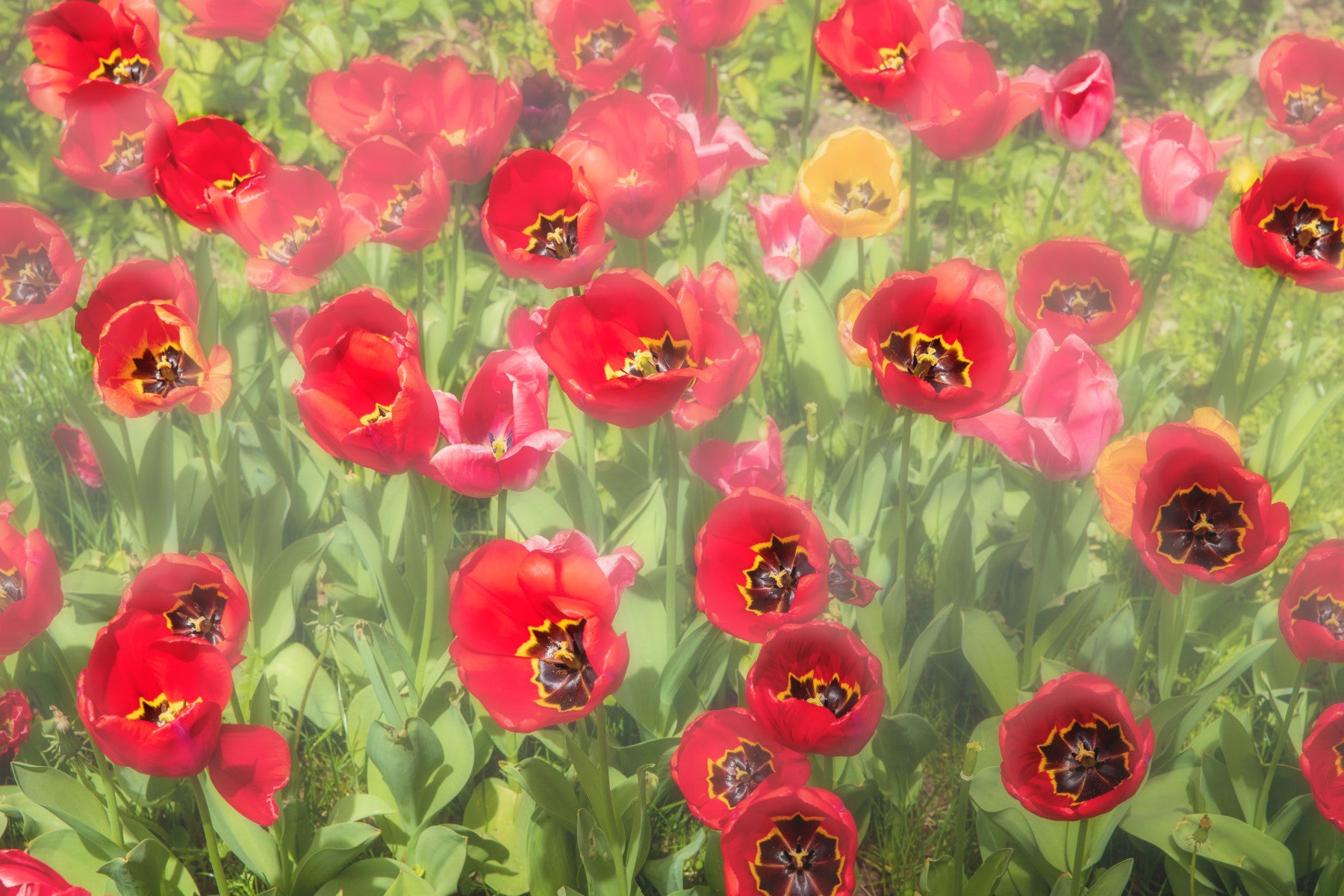 This stunning photograph presents a field of vibrant red tulips, each bloom revealing intricate details and rich colors. The soft focus adds a dreamy quality, inviting viewers to appreciate the beauty of nature. Perfect for brightening up any space, this piece embodies the essence of spring and renewal. Available in various sizes, this artwork makes a striking addition to your home or office decor. Whether displayed in a living room, bedroom, or workspace, it brings a touch of the outdoors inside, enhancing your environment with its lively presence.