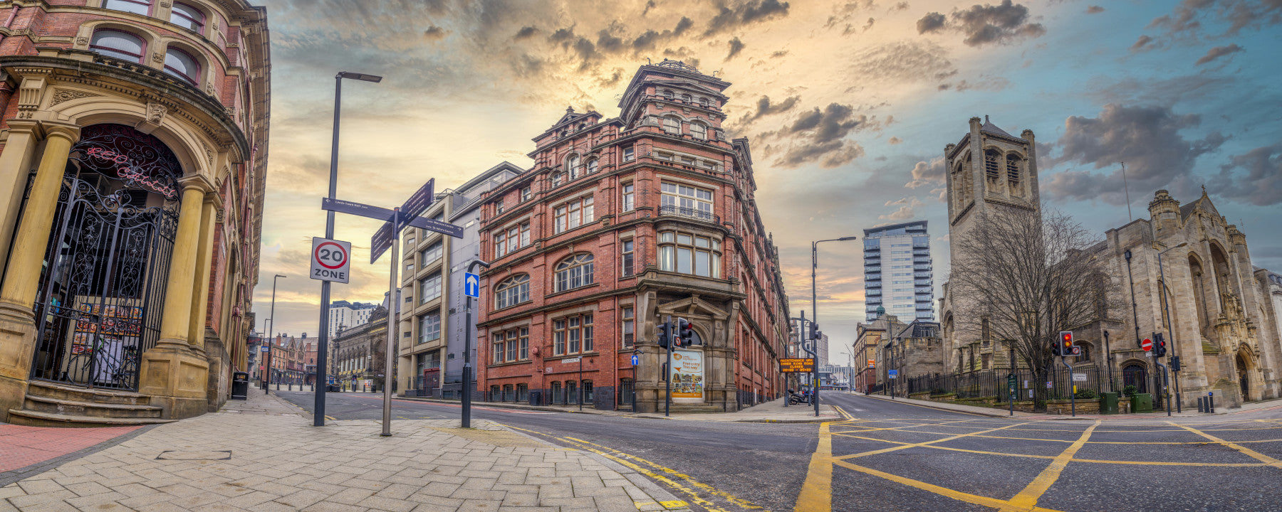 Dusk cityscape mural with Victorian charm