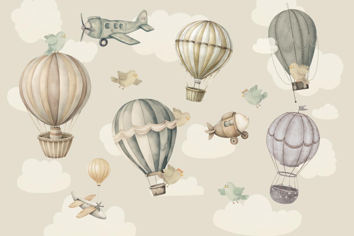 Playful vintage balloon wallpaper for young explorers