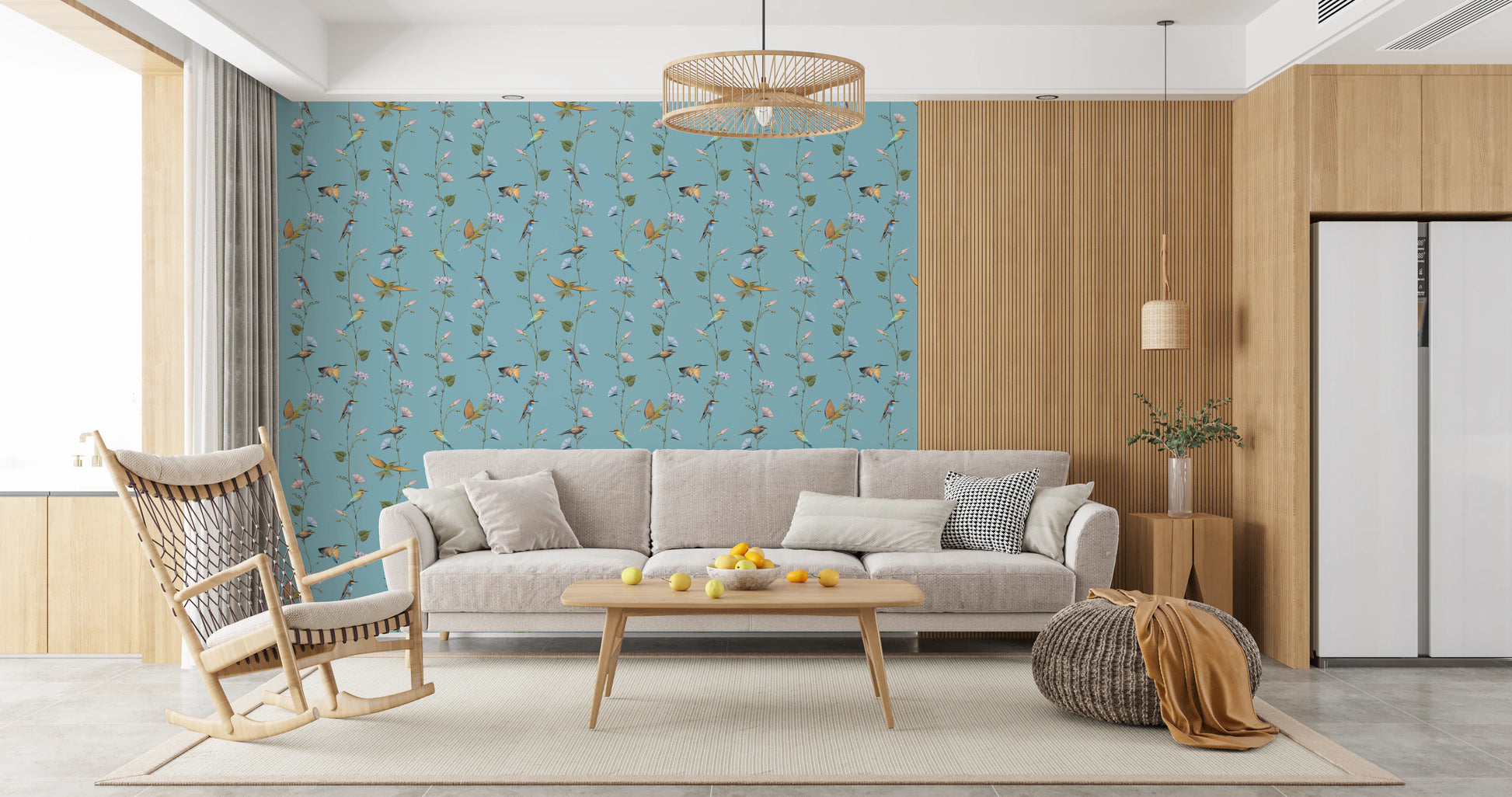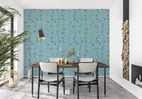 Evoke a sense of timeless beauty with "Vintage Birds and Morning Glories." This exquisite wall covering features delicate morning glories in soft pastel hues, intertwining with gracefully perched and soaring vintage-style birds. The overall effect is one of serene elegance, reminiscent of classic botanical prints. The design captures the quiet charm of a bygone era, creating a soothing and sophisticated ambiance in any room. Invite the tranquil beauty of nature into your home with this captivating display of artistry, perfect for creating a relaxing and stylish sanctuary.