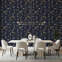 Vintage Birds in Moonlit Garden Wallpaper⁠