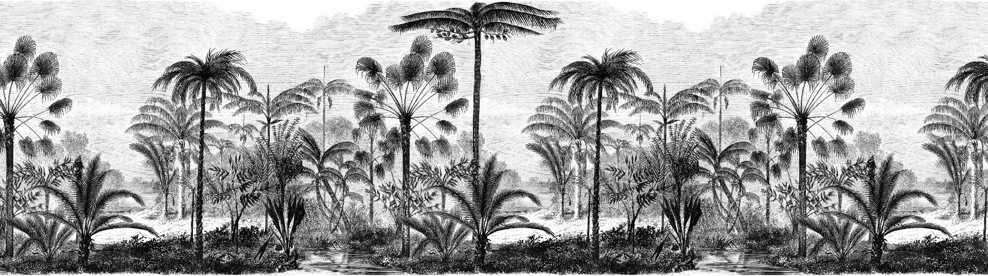 Vintage Black and White Drawn Palm Tree Wallpaper Murals