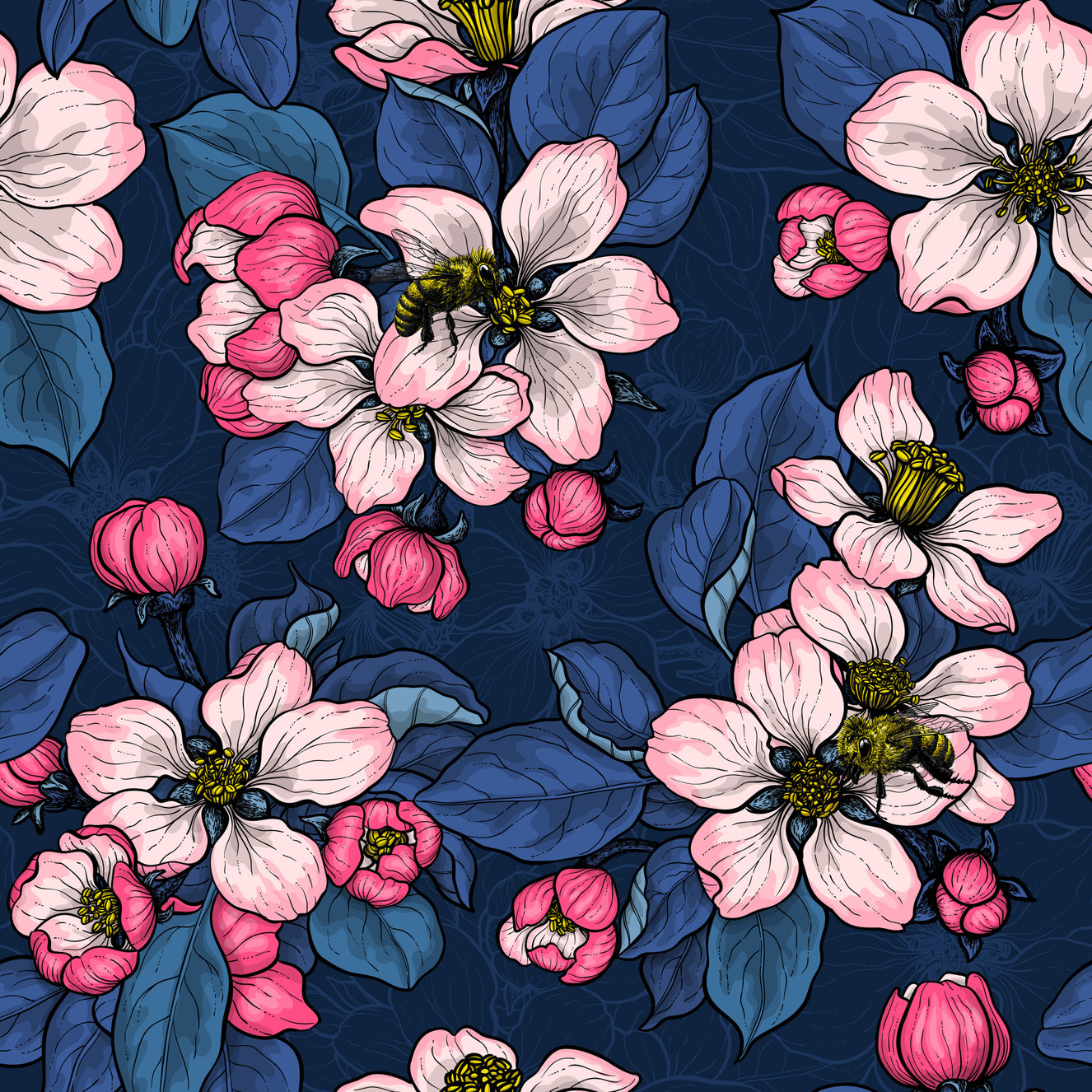 Vintage floral bloom wallpaper design