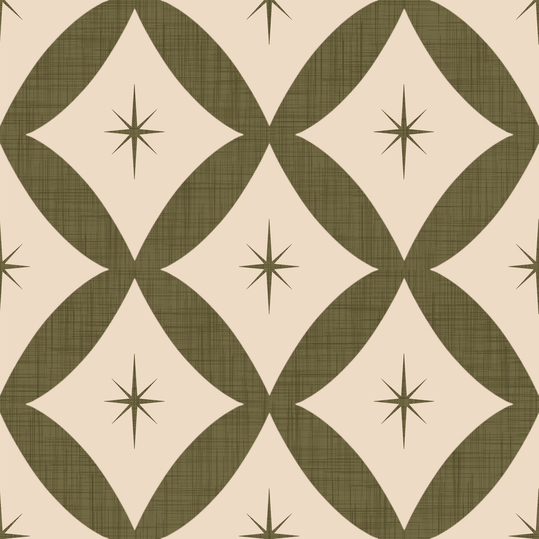 Wallpaper mural, Vintage Stars, with whimsical retro olive pattern.