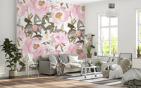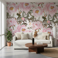 Vintage oil painted Peonies Wall Mural