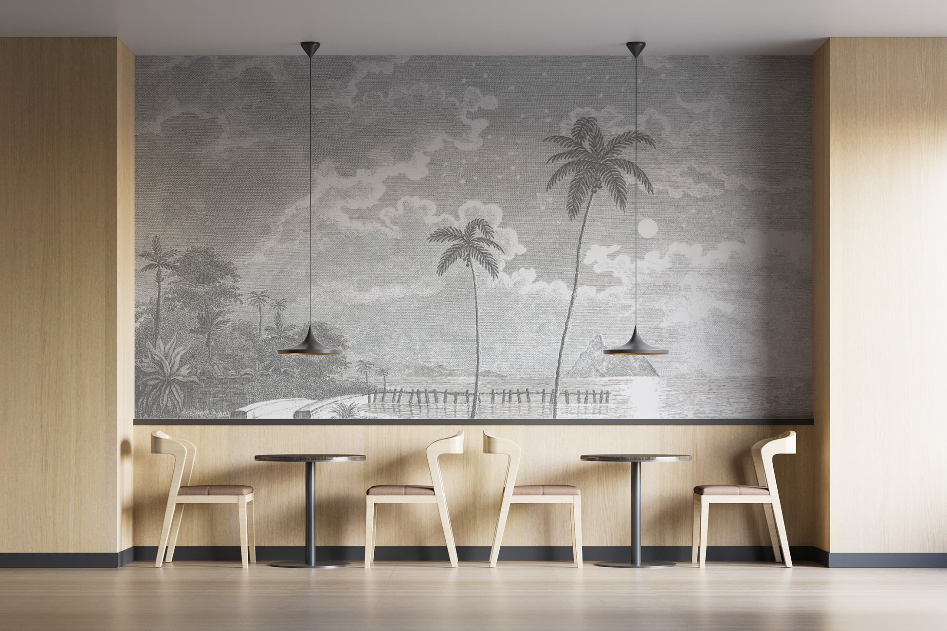 Escape into a timeless coastal retreat with the Vintage Tropical Moonlit Beach Mural. This beach wallpaper showcases a hand-drawn nightscape featuring swaying palm trees, a moonlit shoreline, and a tranquil ocean view. The intricate detailing and soft monochrome tones create a serene atmosphere, perfect for bedrooms, living rooms, or office spaces. Designed for those who appreciate classic artistry, this mural adds an elegant touch while evoking a sense of calm. Made with high-quality materials, it ensures durability and easy application. Elevate your space with this sophisticated beach wallpaper, bringing the beauty of a tropical night into your home.