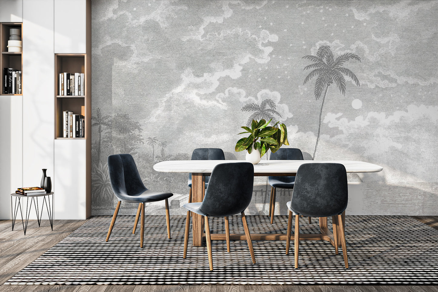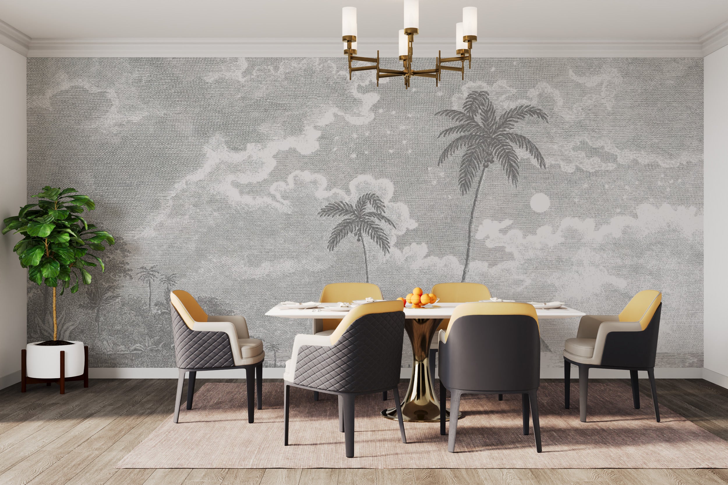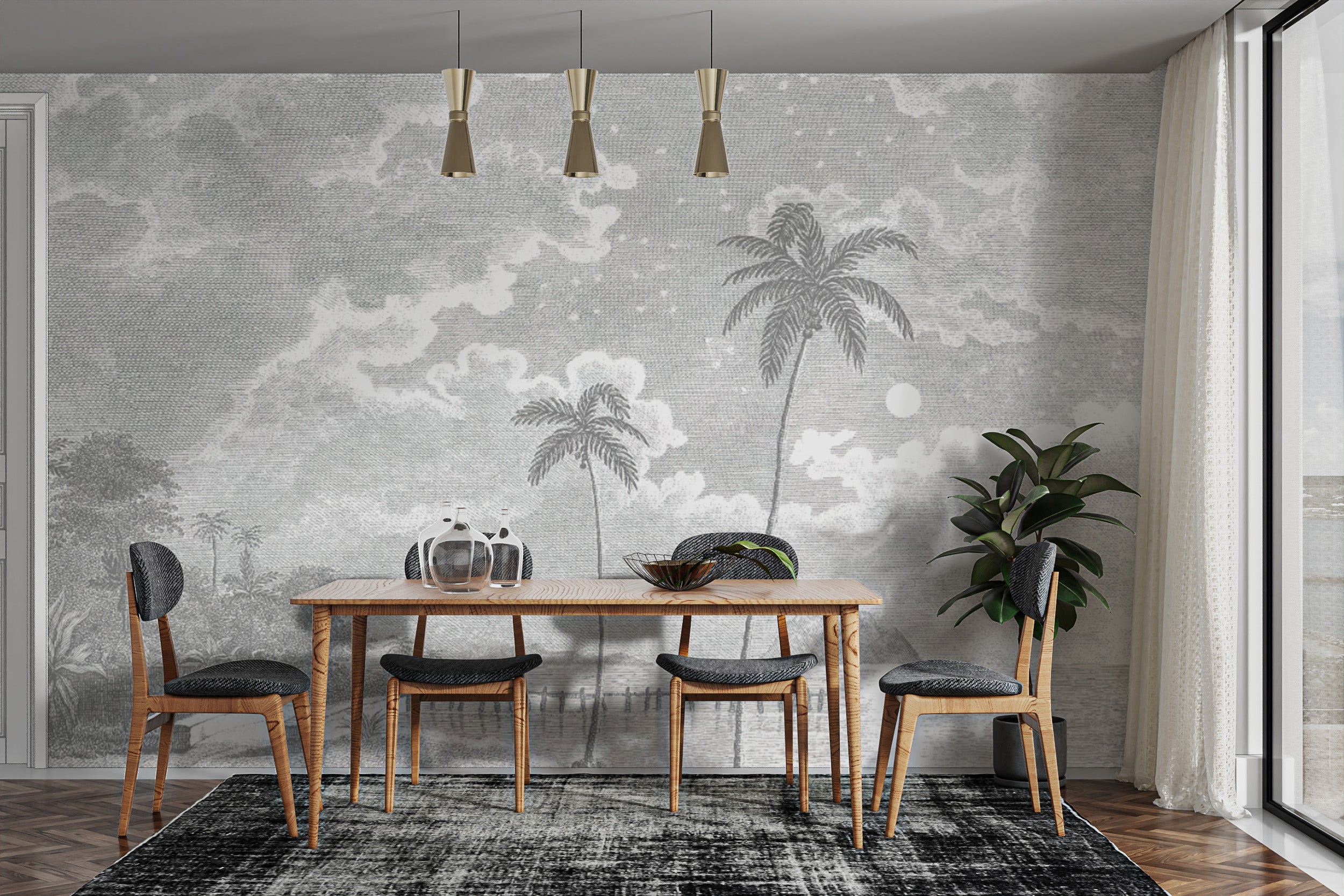 Scenic moonlit palm beach wall design