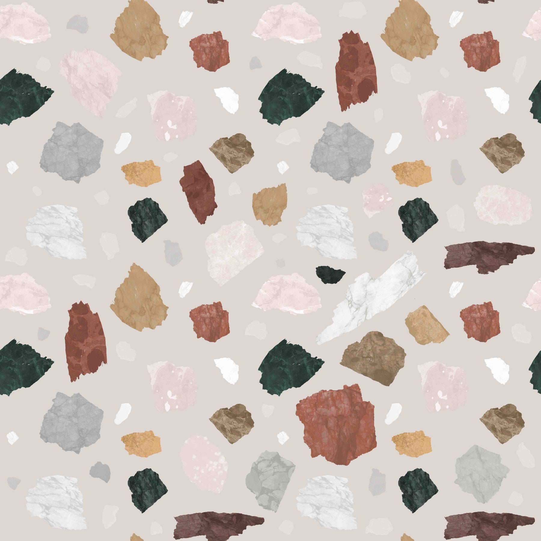 Inspired by the timeless elegance of terrazzo and the architectural principles of Vitruvius, this wallpaper presents a harmonious blend of form and texture. Earthy hues of terracotta, ochre, and muted greens are scattered across a soft, neutral backdrop, evoking the natural materials favored in classical design. The irregular shapes suggest fragments of ancient stone or marble, creating a subtle sense of depth and visual interest. 'Vitruvio' embodies understated sophistication, ideal for adding a touch of refined warmth to any space.