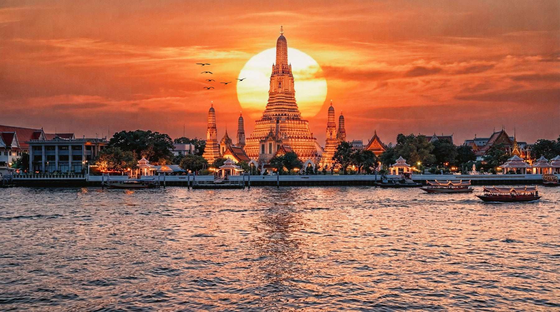 Wat Arun: Golden Horizon Sunset Wall Mural