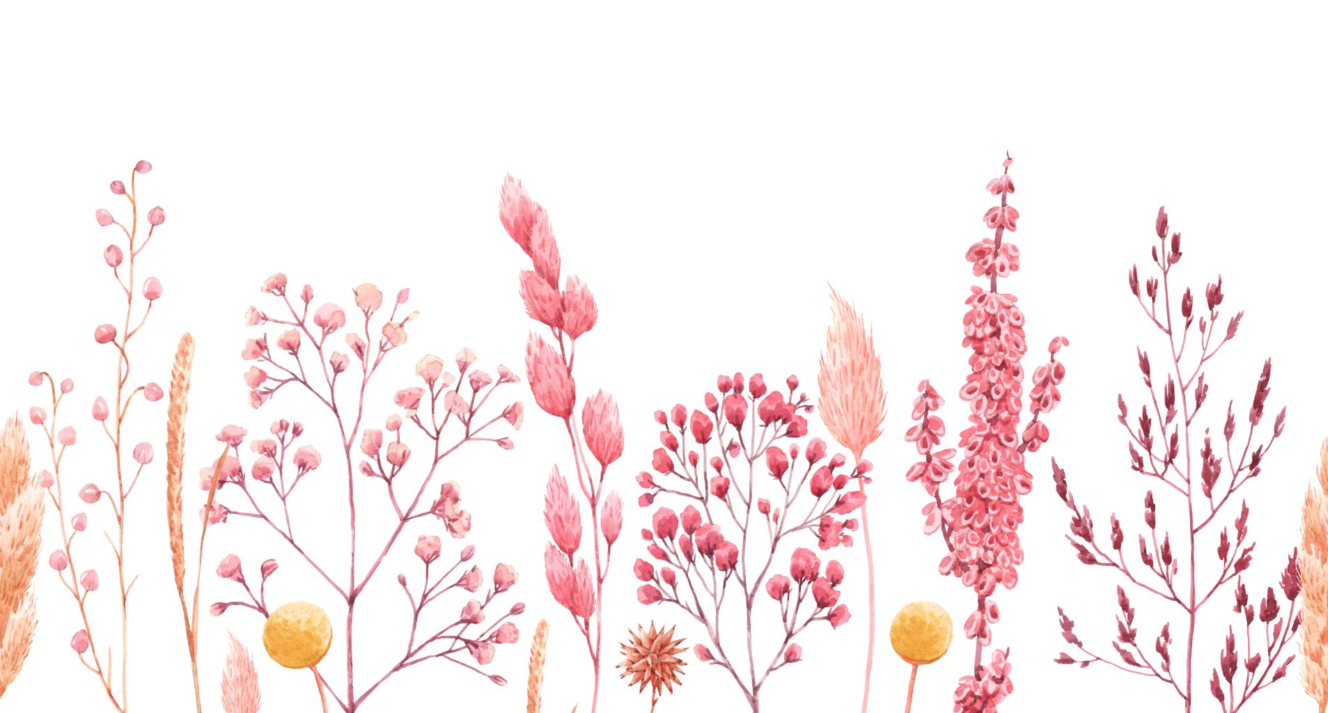 Watercolor wallpaper featuring pink and beige dried flowers.