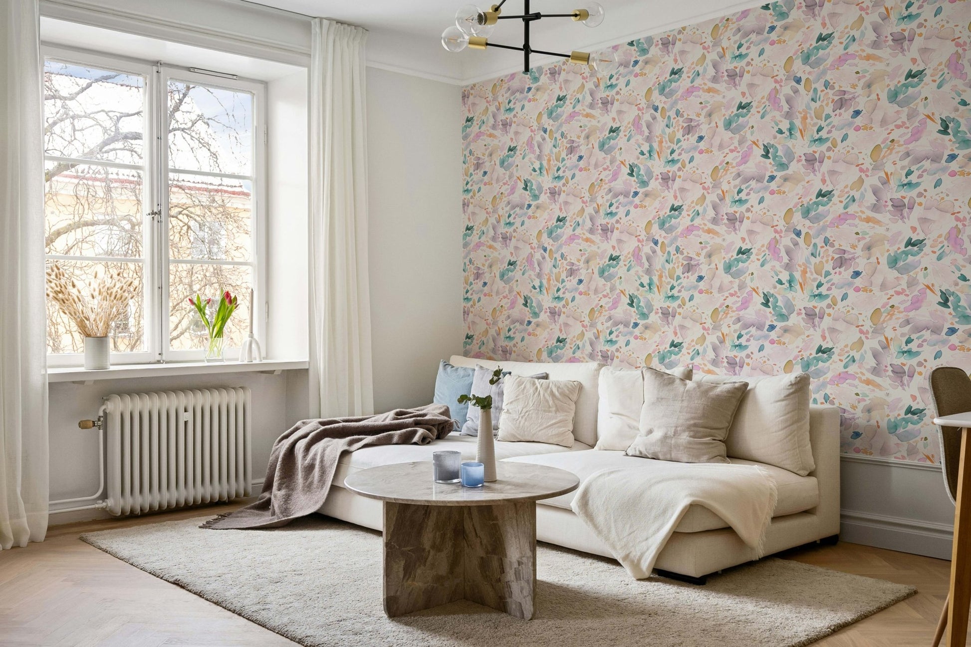 Dive into a serene world of abstract floral beauty with this "Watercolor Abstract Petals" wallpaper. Soft, pastel hues of lavender, rose, teal, and apricot dance across a crisp white background, creating a delicate and airy atmosphere. Loose watercolor strokes evoke the feeling of petals scattered gently, their forms playfully abstract and undefined. The subtle color variations and organic shapes bring a sense of calm and effortless elegance, perfect for adding a touch of artistic tranquility to any digital device.