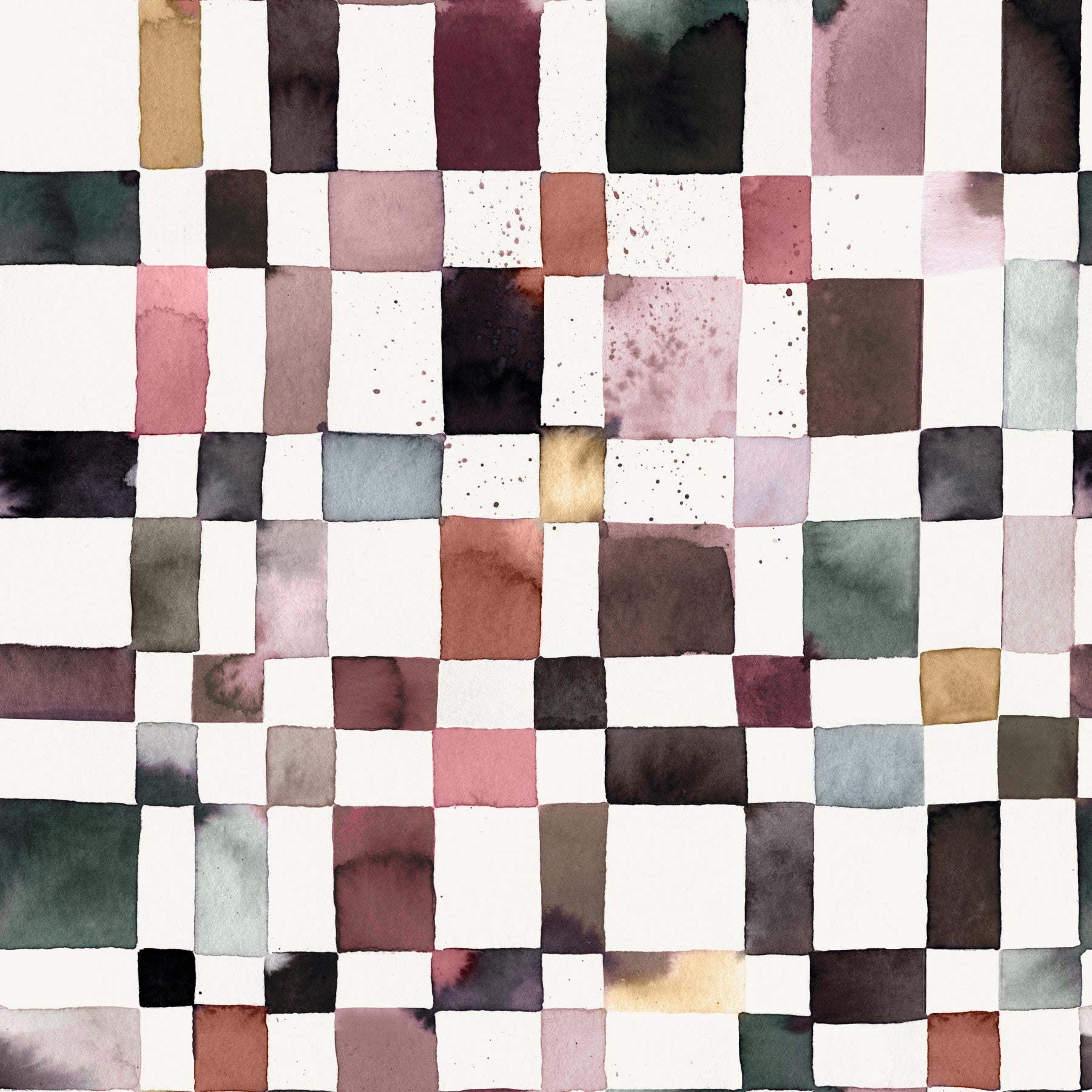 This captivating wallpaper showcases a unique blend of geometric precision and artistic freedom. A checkerboard pattern forms the foundation, but instead of sharp lines and solid colors, each square bursts with the soft, subtly blended hues of watercolor paints. Earthy tones of deep browns, muted pinks, soft greys and hints of gold create a calming, yet sophisticated atmosphere. The slightly irregular edges of the watercolor squares add a touch of organic imperfection, balancing the structured grid. Random watercolor splatters further enhance the handcrafted feel, adding a playful dynamism to the overall design. Perfect for creating a modern and artistic ambiance in any digital space.