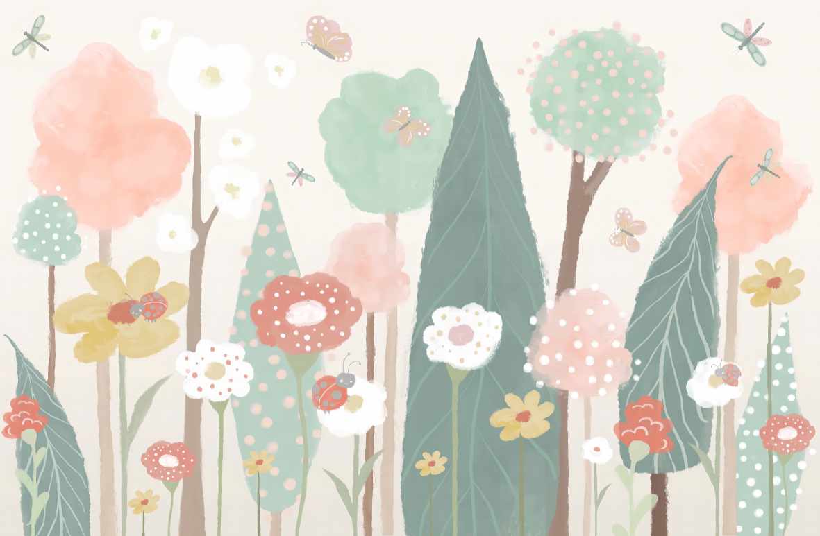 Delicate watercolor floral trees mural perfect for modern spaces.