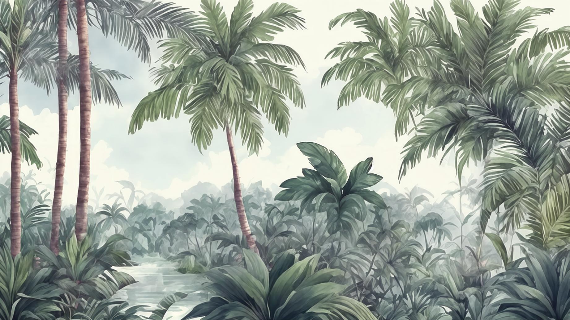 Watercolor Green Forest Wallpaper
