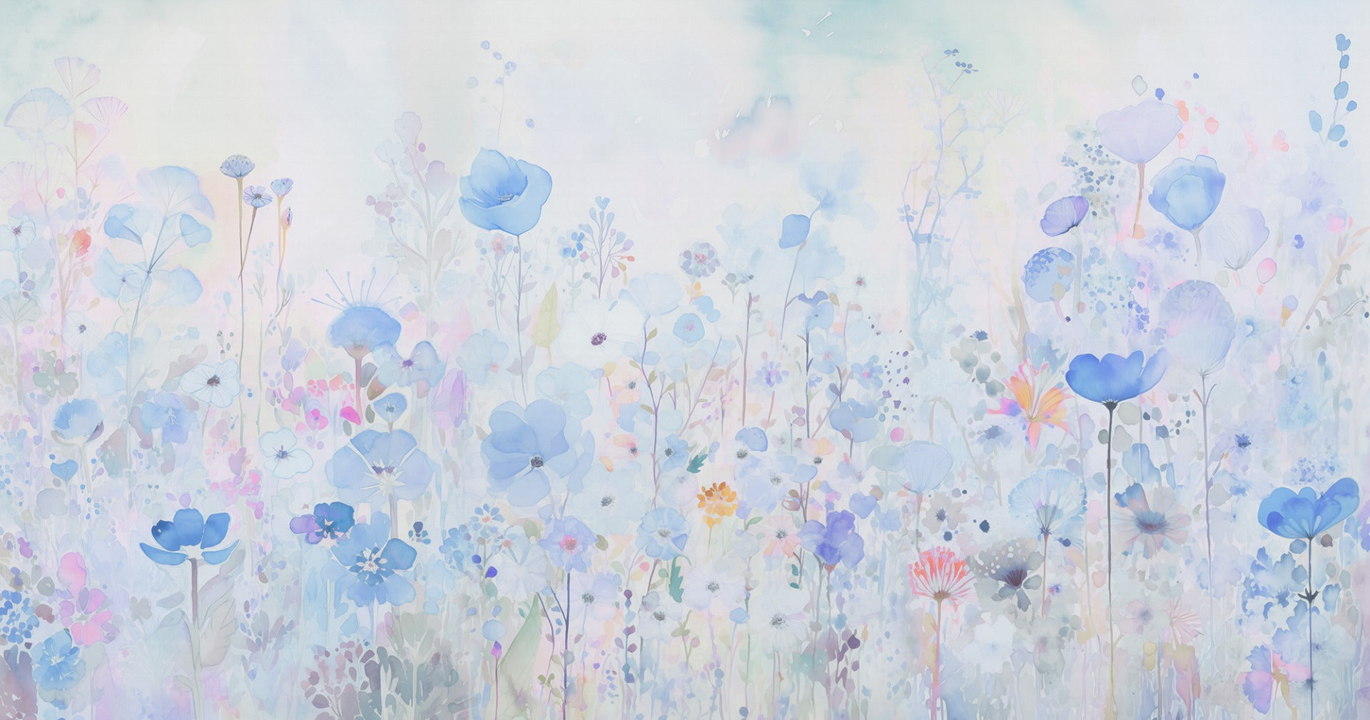 Soft watercolor happy flowers blue wallpaper for a serene, happy atmosphere.