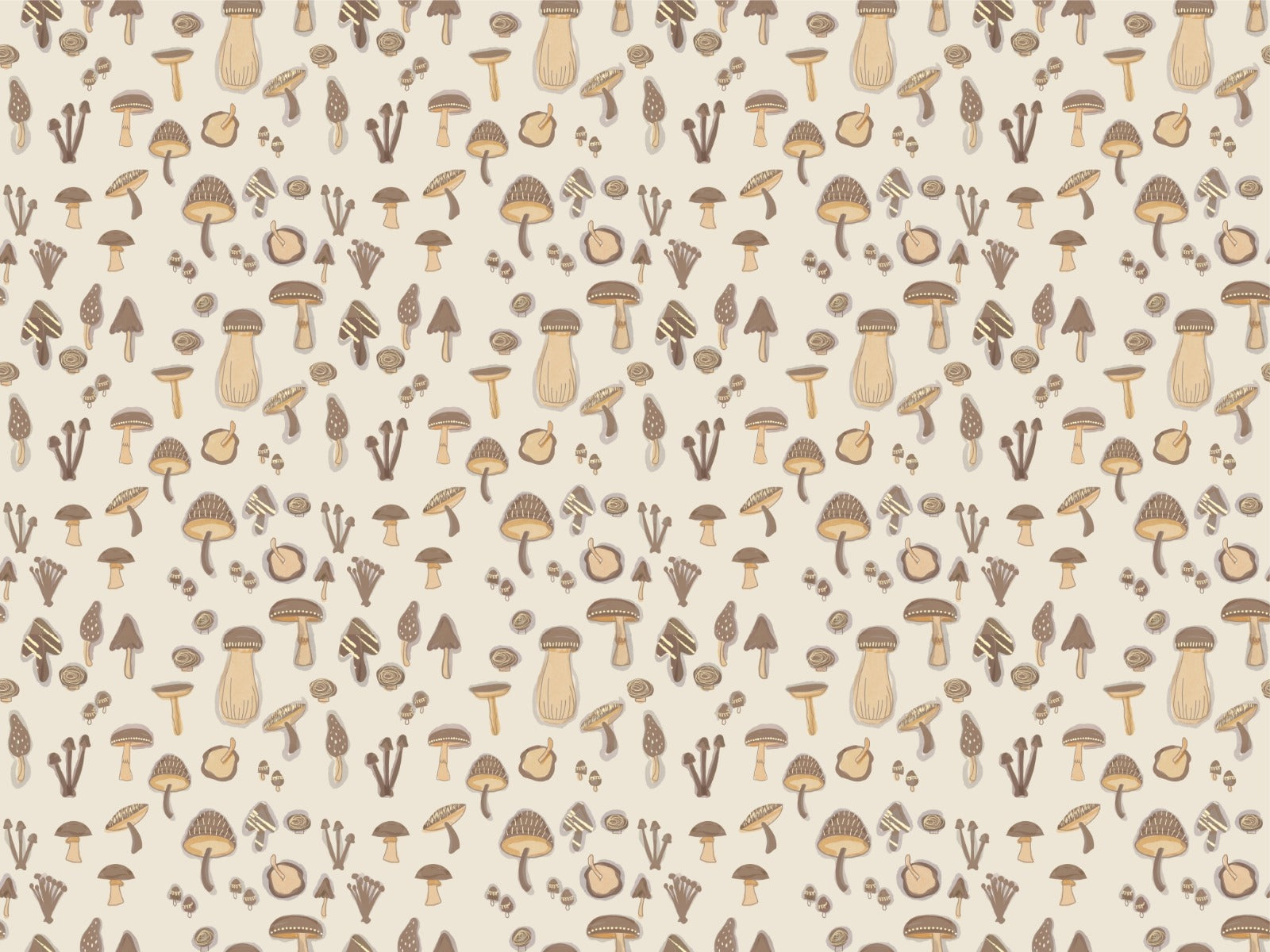 Sand-colored Watercolor Mushrooms Wallpaper for decor