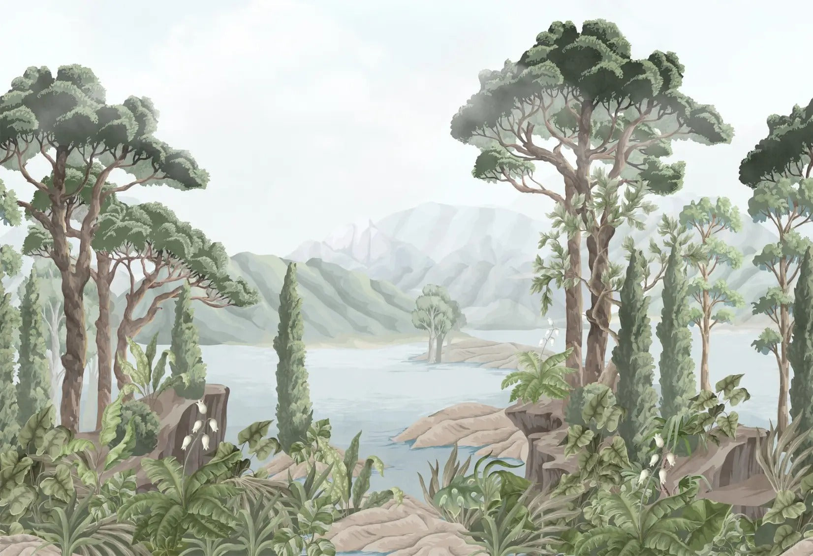 Get this enthralling feel to your kid's bedroom through the watercolour jungle landscape wallpaper. This picture brings out an oasis of luscious, richly toned tree trunks, all their emerald vegetation and a tranquil river and sets the most appropriate background to adventure. Long-lasting and highly hassle-free to set up, it bestows magic over the kids' place. Make a jungle, make them want to play for long hours, and go with great bedtime stories when having this landscape on your child's wall. Detailed design and high-quality printing ensure that colours do not fade with time. Get yours today, and free shipping on your order is included, so it's a no-brainer to transform your child's room.