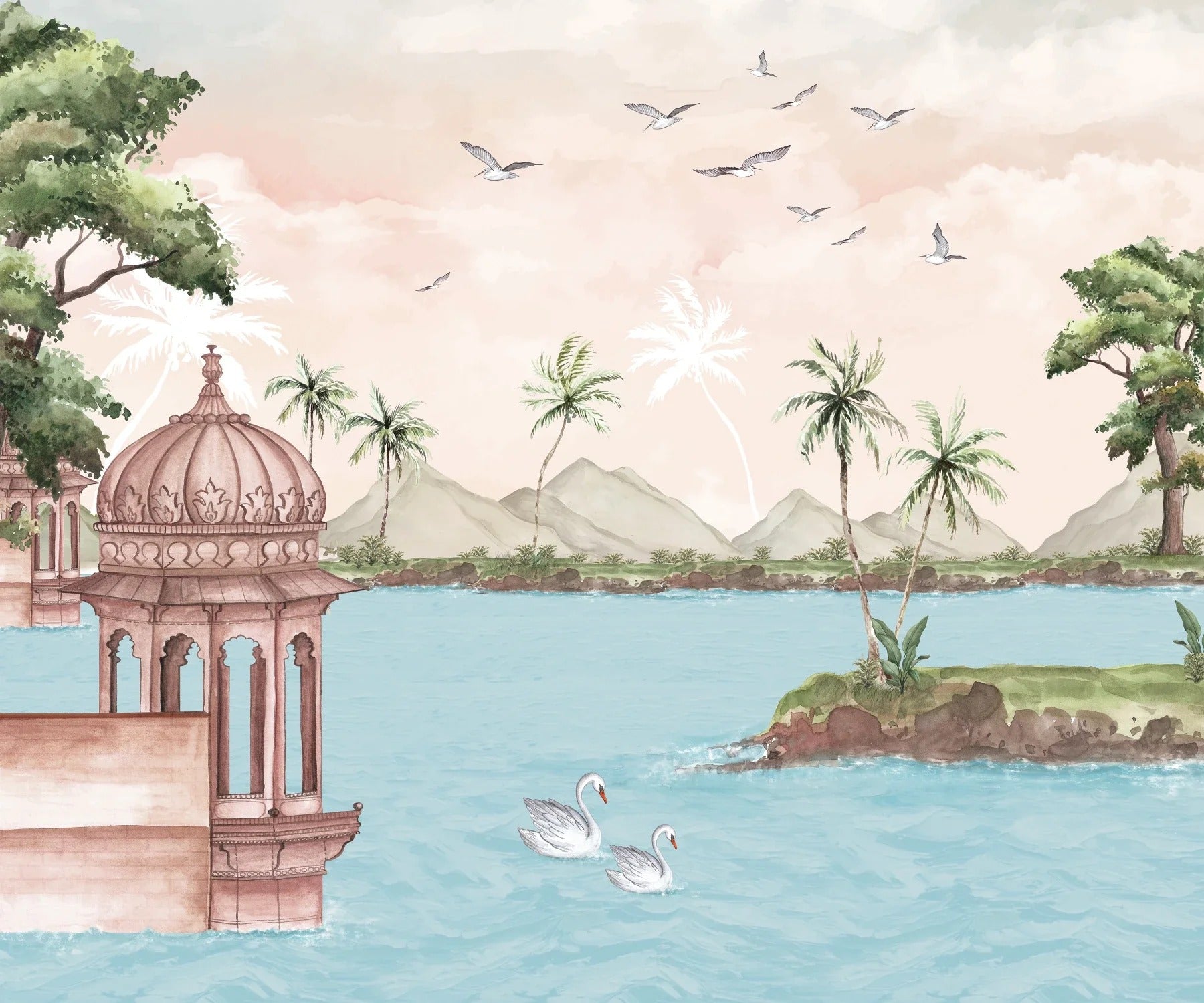 Elegant Watercolour Lakeside View Wall Mural for homes