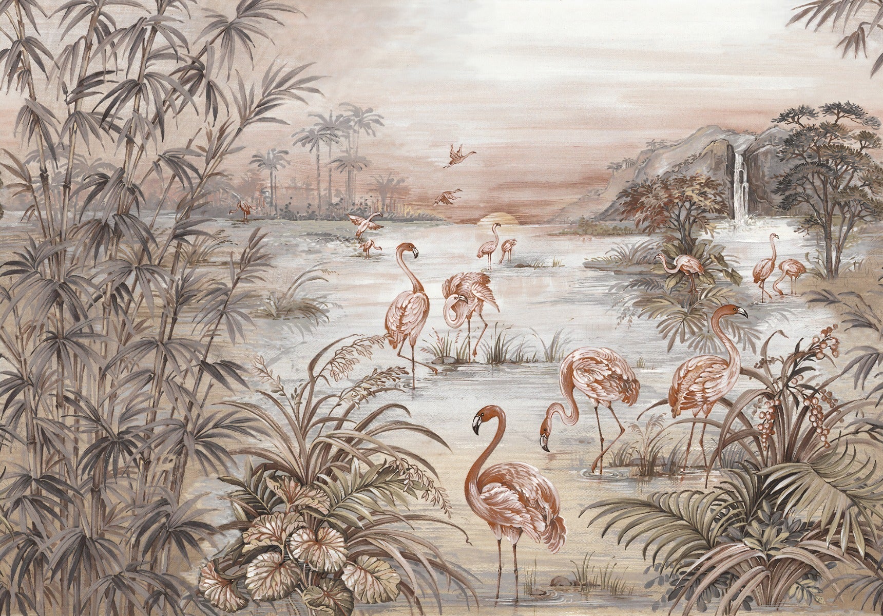 Watercolor Tropicana Flamingos Wallpaper Mural