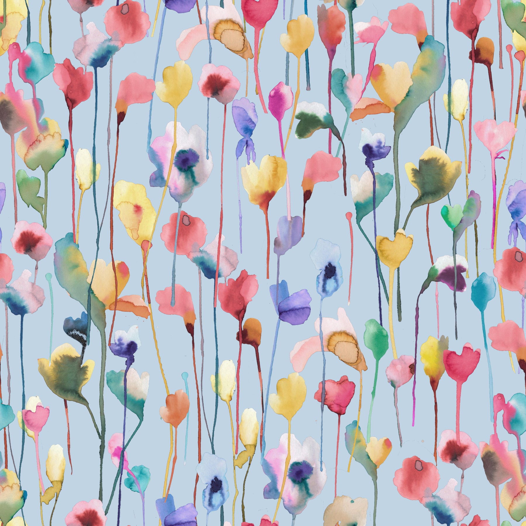 Dive into a serene world of artistry with this light blue watercolor wallpaper. Delicate, abstract flowers in a spectrum of soft pastels and vibrant hues dance across the calming background. The watery effect of the paint creates a sense of fluidity and movement, while the artistic interpretation of the floral forms adds a touch of modern elegance. Perfect for adding a touch of whimsical charm to any space, this design blends tranquility with a vibrant splash of color, making it ideal for bedrooms, living rooms, or home offices seeking a peaceful and stylish atmosphere. The subtle drips and blooms evoke a feeling of gentle rain and blooming spring, bringing a sense of refreshing beauty to your digital devices.