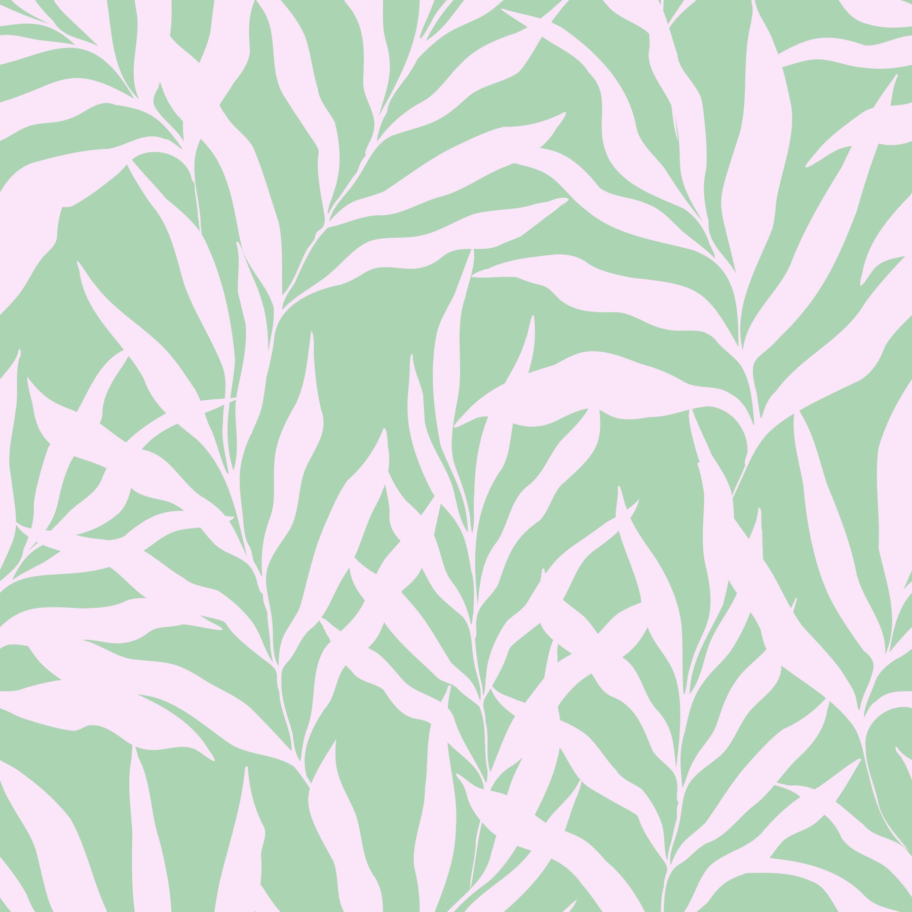 Create a soothing retreat with this nature-inspired wallpaper for walls. The stylized palm leaf pattern features gentle pastel pink fronds contrasted against a light mint background. This design is perfect for transforming bedrooms, bathrooms, or nurseries into tranquil spaces. The calming palette complements various décor styles, from modern to boho. It brings a touch of the tropics indoors without overwhelming the space.