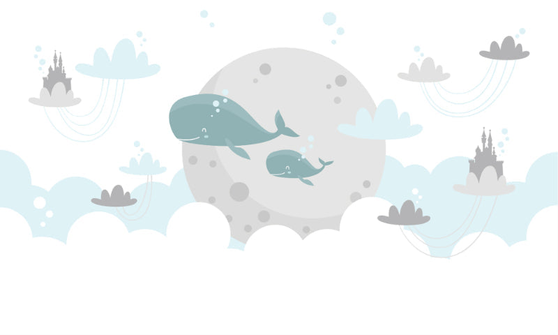 This cute blue mural is quite an attractive decor item, with flying whales dancing amongst the fluffy clouds and thus alluding to and touring the graceful moon. Through the soft colors and the whimsical nature of this mural, there is a calming effect into which the mind readily retreats fantasy knows no bounds Kids Room Mural. It is a welcoming scene that inspires tales of magical flying in the air and provides a tranquil setting for play and slumber. Very suitable for young dreamers, this mural can add playful fantasy to every corner, making an ordinary wall into a sky-high dream design and soft nighttime stories.