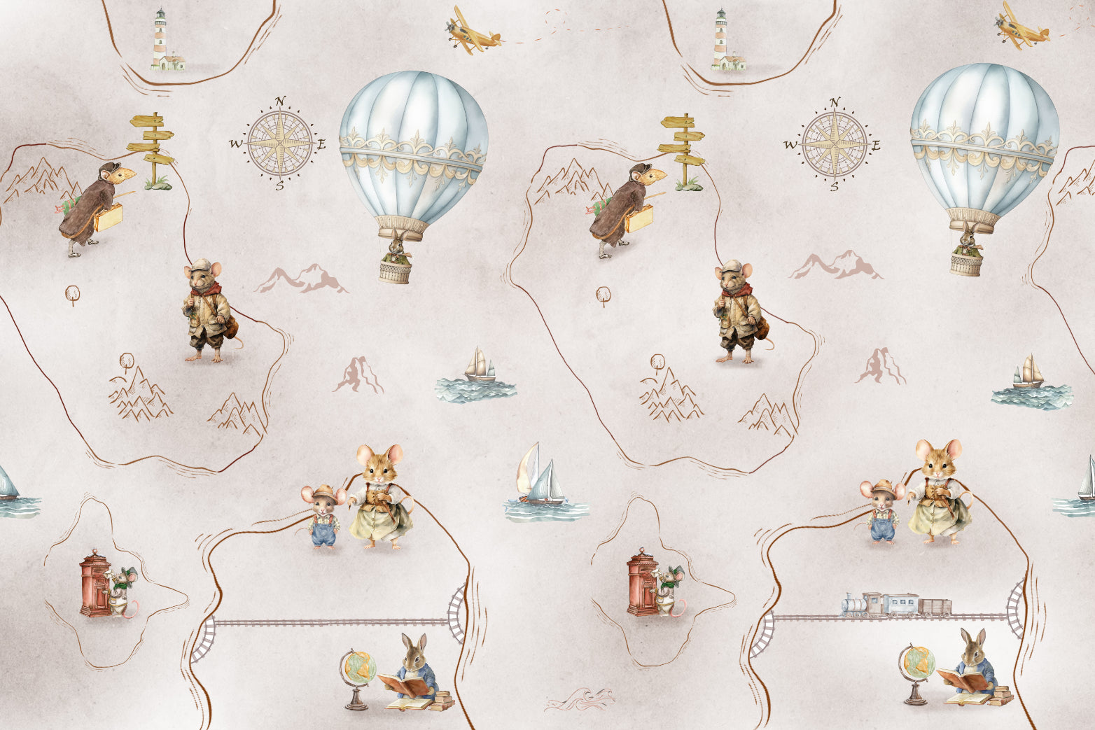 Whimsical Adventure Animal Map Wallpaper brings a playful storybook charm to any space. Featuring adorable animals on a hand-drawn adventure map, this design is perfect for nurseries, kids' rooms, and play areas. Delicate illustrations of air balloons, sailing ships, and woodland creatures create a sense of wonder and exploration. Crafted with high-quality materials, this animal map wallpaper offers durability and easy application. Ideal for those seeking whimsical kids' wallpaper, it adds a soft, imaginative touch to walls. Transform any room into a magical journey with this storybook adventure wallpaper, designed to inspire young explorers and dreamers.