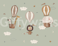 Whimsical Animal Balloon Ride Green Wall Mural