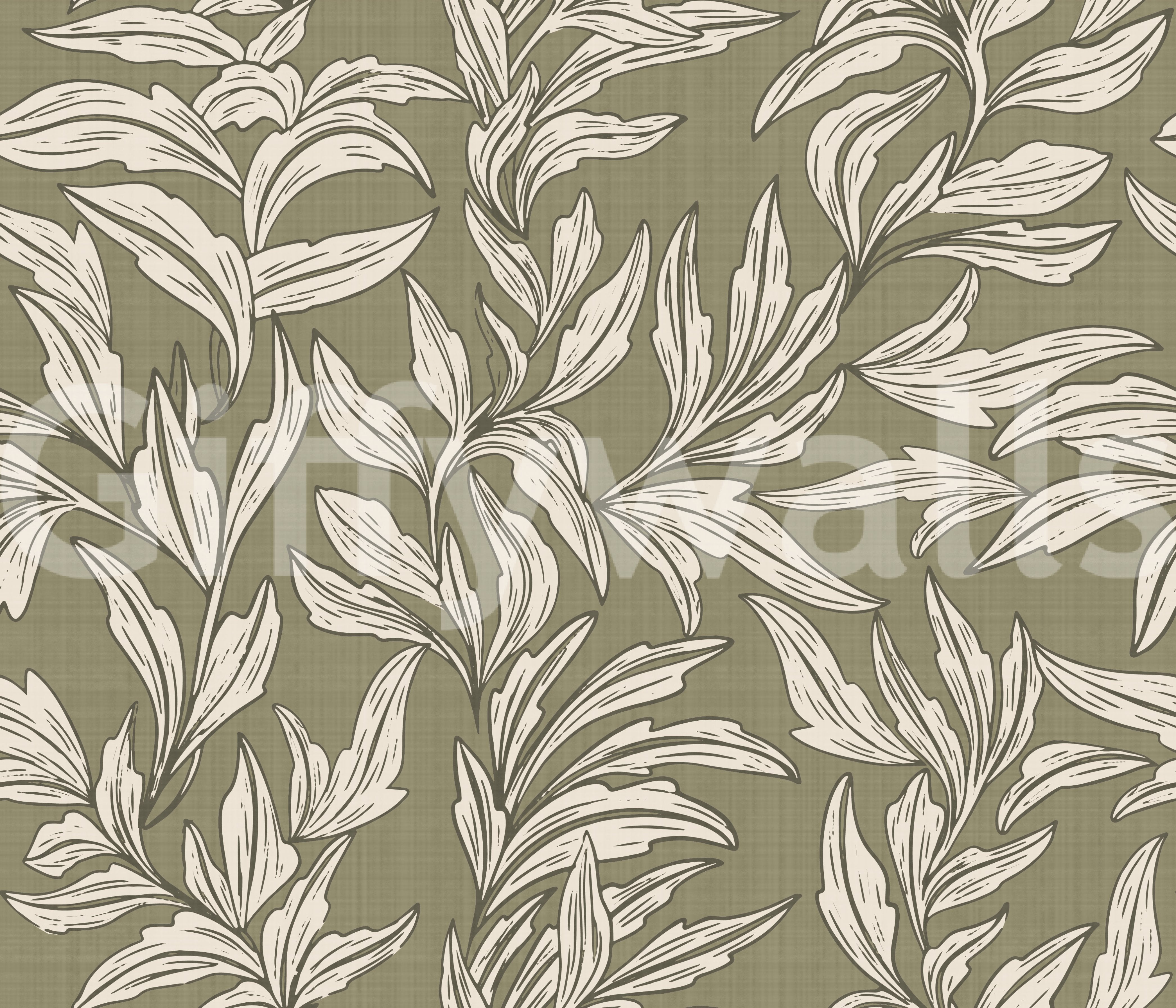 Infuse your space with a touch of whimsical charm using the 'Whimsical Leaf Print' wallpaper. This design features a delightful pattern of stylized, off-white leaves delicately rendered against a muted sage green background. The hand-drawn style gives it a unique, artistic feel, while the soft color palette creates a calming and inviting atmosphere. The repeating pattern is both playful and sophisticated, making it suitable for various rooms. This wallpaper adds a touch of understated elegance to any space, whether it's a bedroom, living room, or even a home office, encouraging a peaceful and joyful mood.