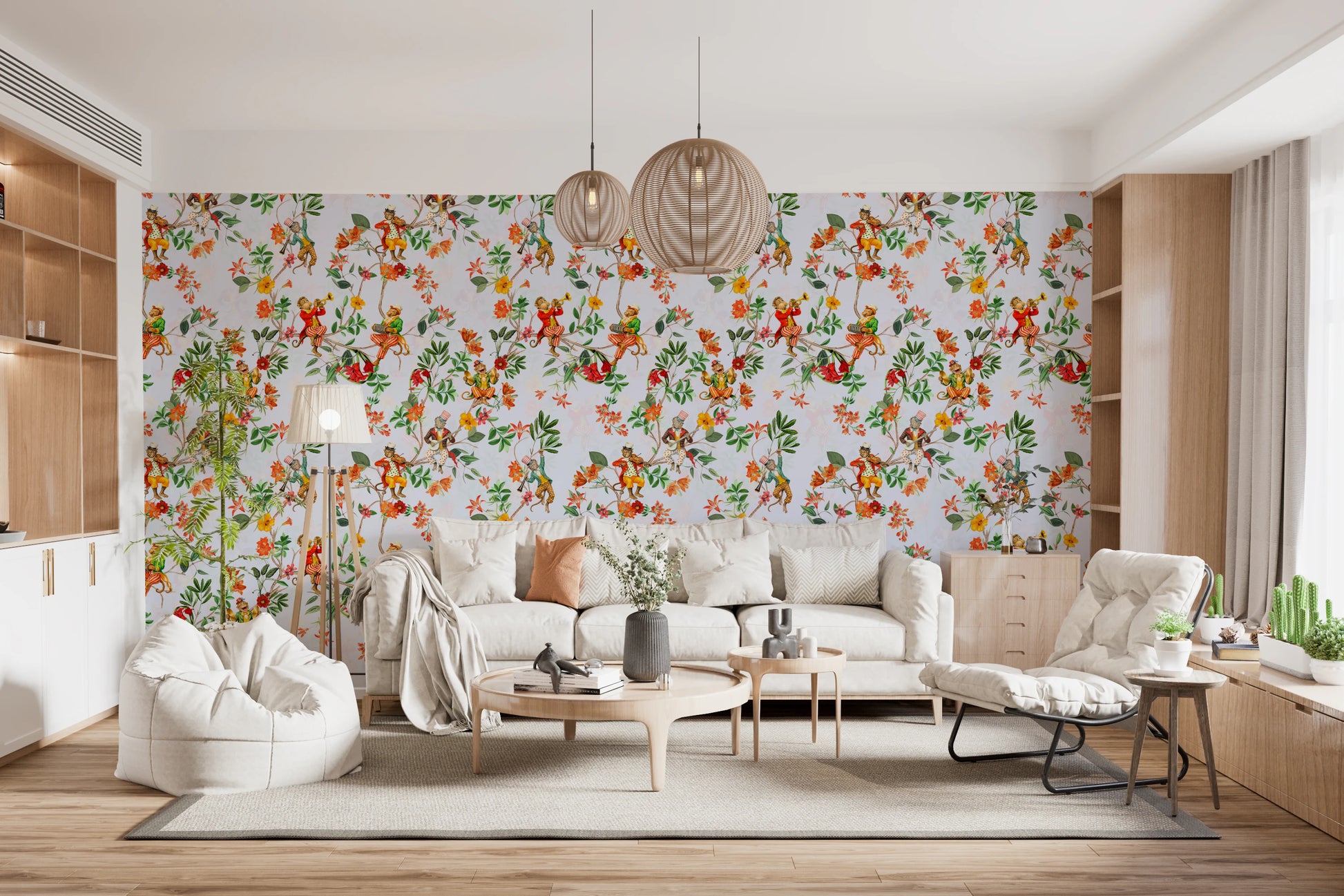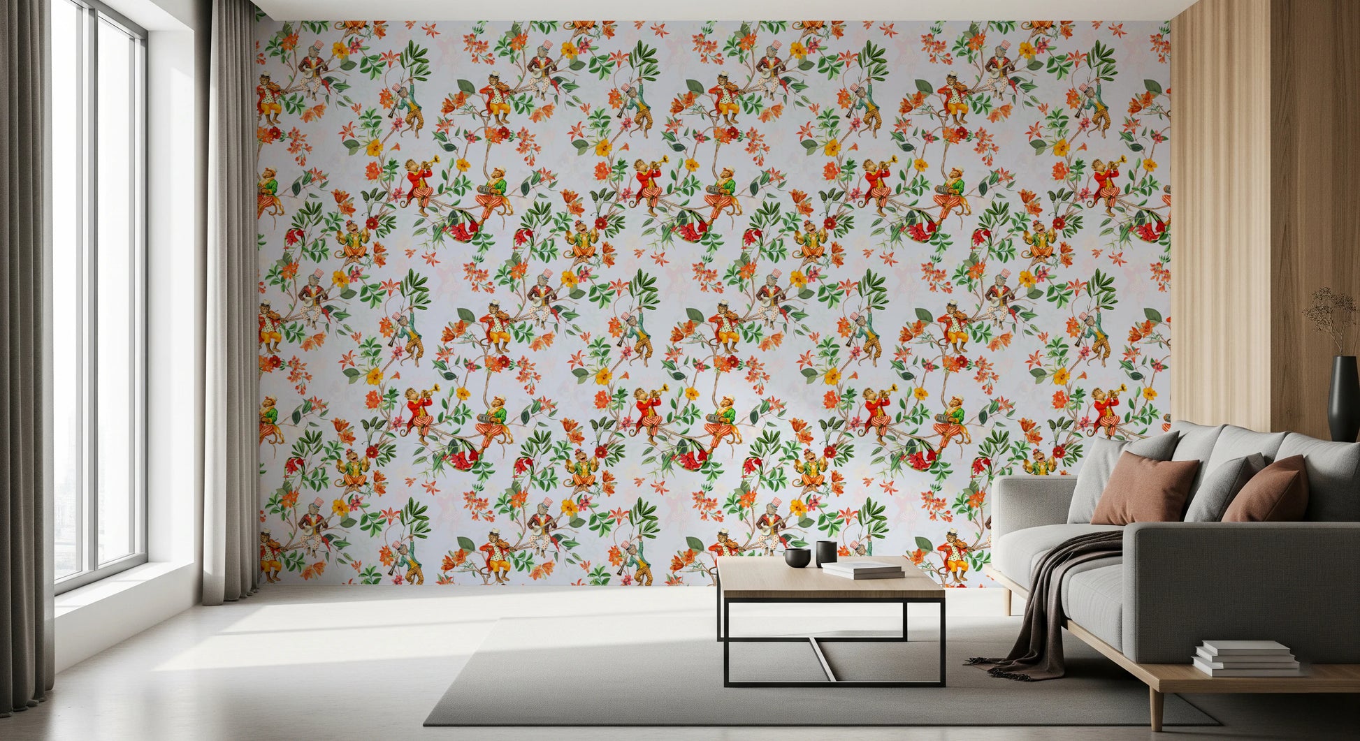 Transform any room into a playful paradise with this vintage-inspired wall décor by Uta Naumann. "Whimsical Monkeys Playing Music" features a charming array of smartly dressed monkeys joyfully making music amidst an exotic garden. Vivid oranges, reds, and yellows of tropical flowers pop against a soothing green backdrop, creating a visually stunning and unique ambiance. These delightful primate musicians, complete with hats and quirky outfits, add a touch of lighthearted fun and sophistication. This design is guaranteed to bring character and conversation to any space. Evoke a sense of wonder and vintage charm with this lively and captivating piece.