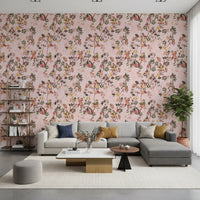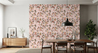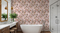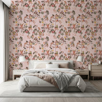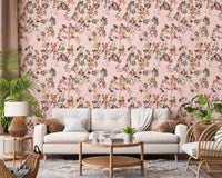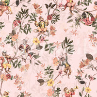Whimsical Monkeys Playing Music Vintage Exotic Fun Garden pink Wallpaper⁠
