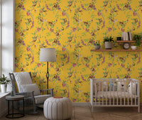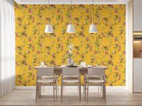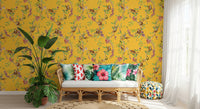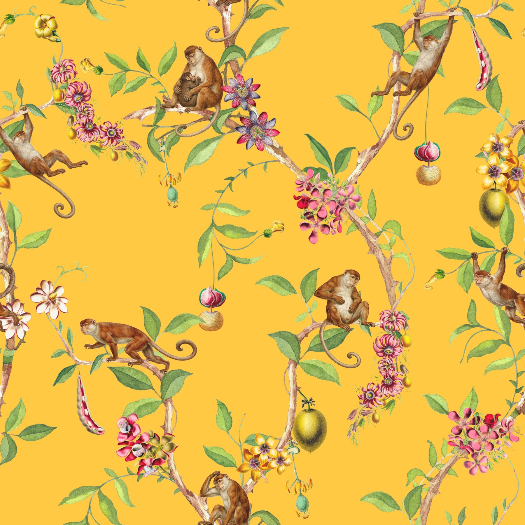 Whimsical Playing Monkeys Family Vintage Exotic Garden yellow Wallpaper⁠