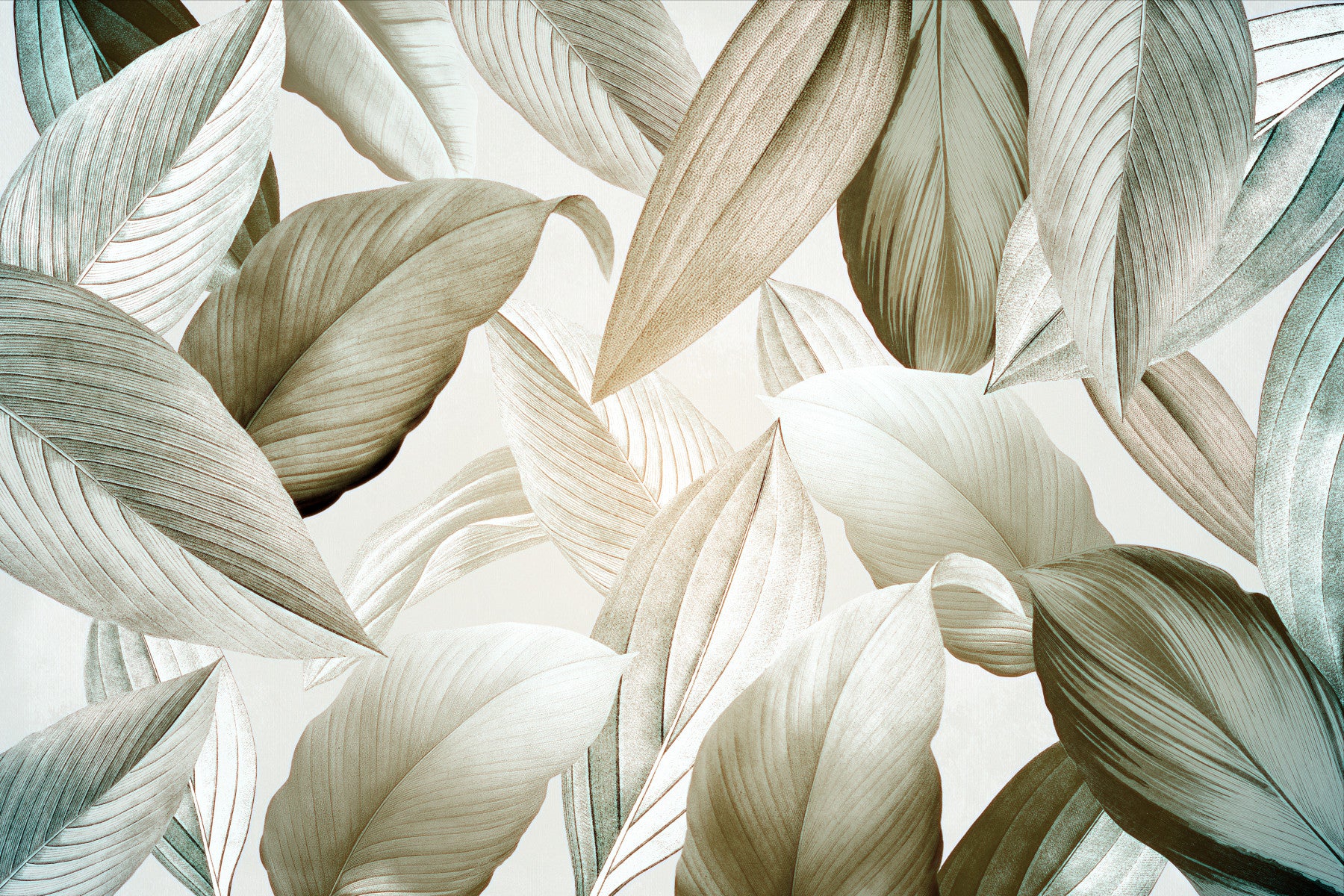 Experience the subtle beauty of 'Whispering Leaves,' a wallpaper design showcasing a collection of intricately detailed leaves in a soft palette of muted greens, creams, and browns. The almost monochromatic color scheme and the delicate texture of each leaf create a calming and serene atmosphere. Perfect for bedrooms, bathrooms, or any space where a touch of understated elegance is desired, this wallpaper seamlessly blends natural beauty with a minimalist aesthetic. The subtle interplay of light and shadow within the leaves adds depth and visual interest, transforming any room into an oasis of tranquility.