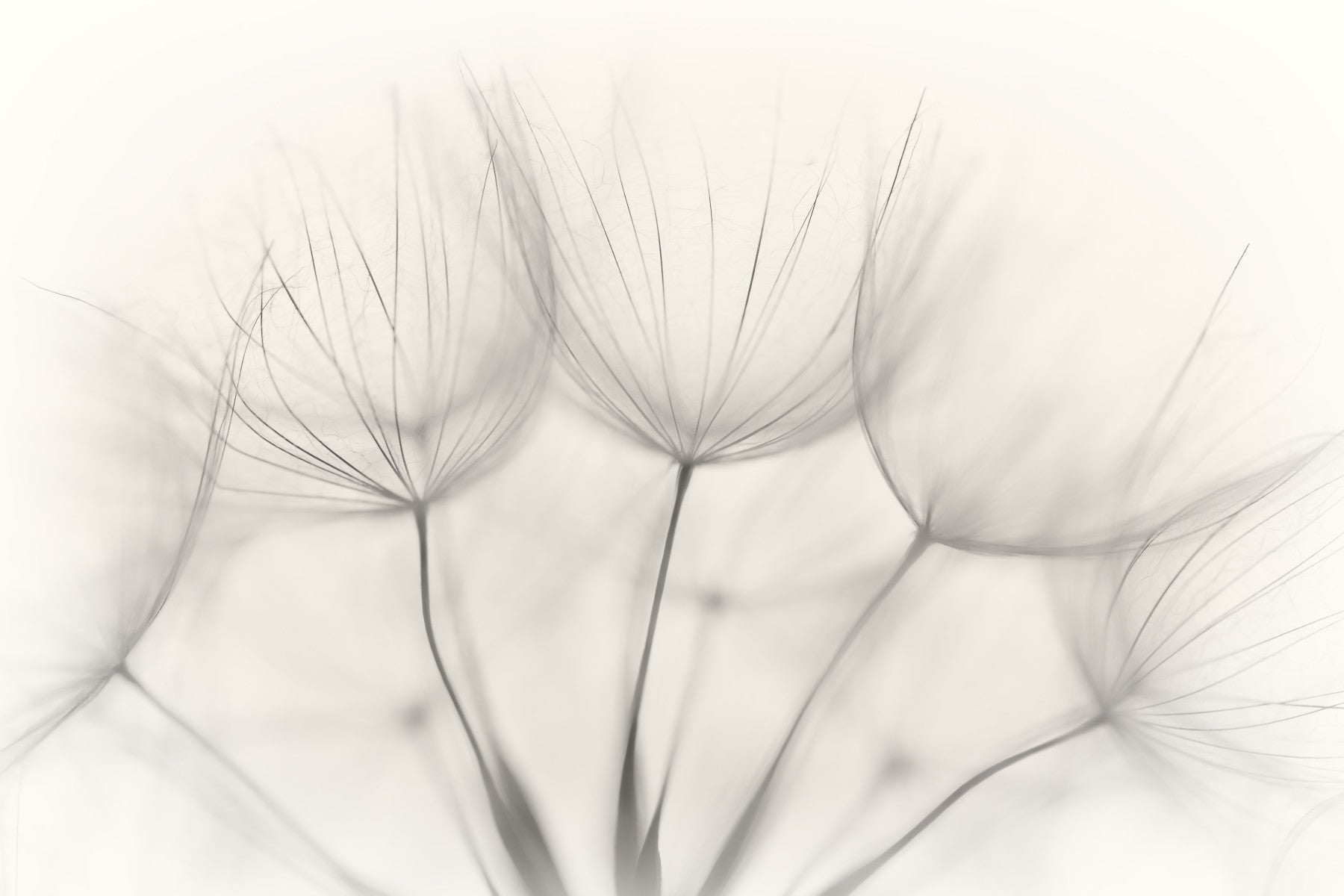 An artistic delicate dandelion mural on minimalist wallpaper.