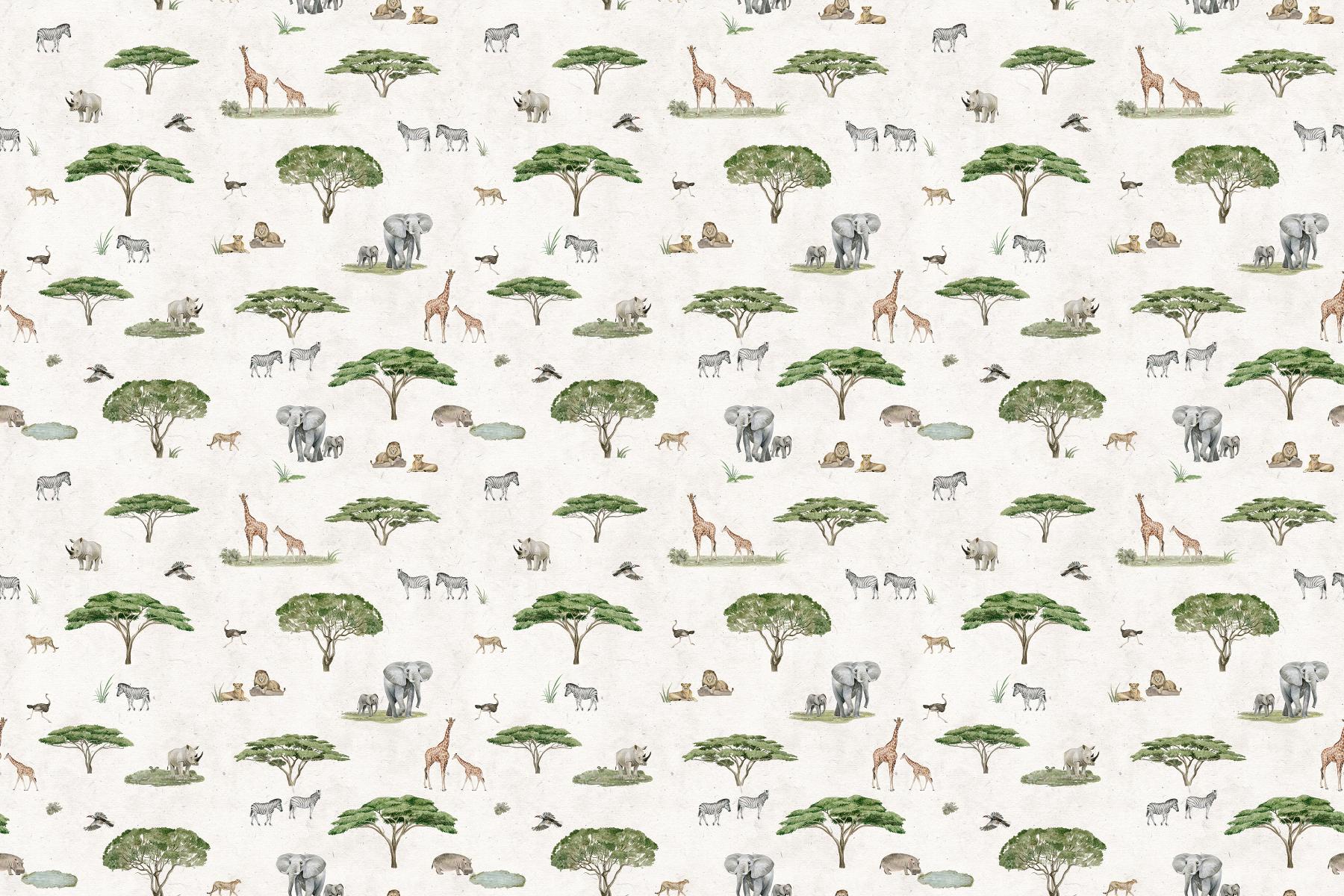 Bring the charm of the wild into your space with White African Savannah Wildlife Wallpaper. This design captures the essence of the African plains and features hand-drawn elephants, giraffes, zebras, and acacia trees. Set against a crisp white backdrop, it creates an airy and tranquil ambiance, perfect for nurseries, kids' rooms, or safari-themed interiors. The high-quality material ensures durability and easy installation. This wallpaper blends nature's beauty with modern elegance and is ideal for those who love African wildlife decor. Transform any room into a serene savannah retreat with this safari-inspired wallpaper, adding warmth and adventure to your walls.