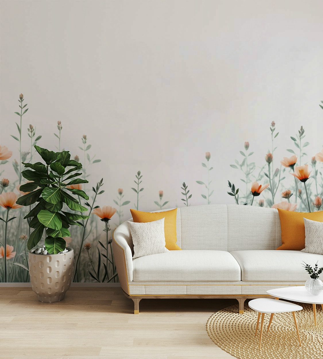 This beautiful white flower in the muted grey of peel-and-stick mural wallpaper is a refined complement to beautify your living room. The design features a stunning, detailed white flower set against a soothing grey backdrop, creating a serene and sophisticated atmosphere. With the quiet colour scheme, this wallpaper suits many interior styles, from modern minimalism to traditional classicism. Ideal for people who value natural beauty, this flowered wallpaper has a great natural, relaxing atmosphere for your home.