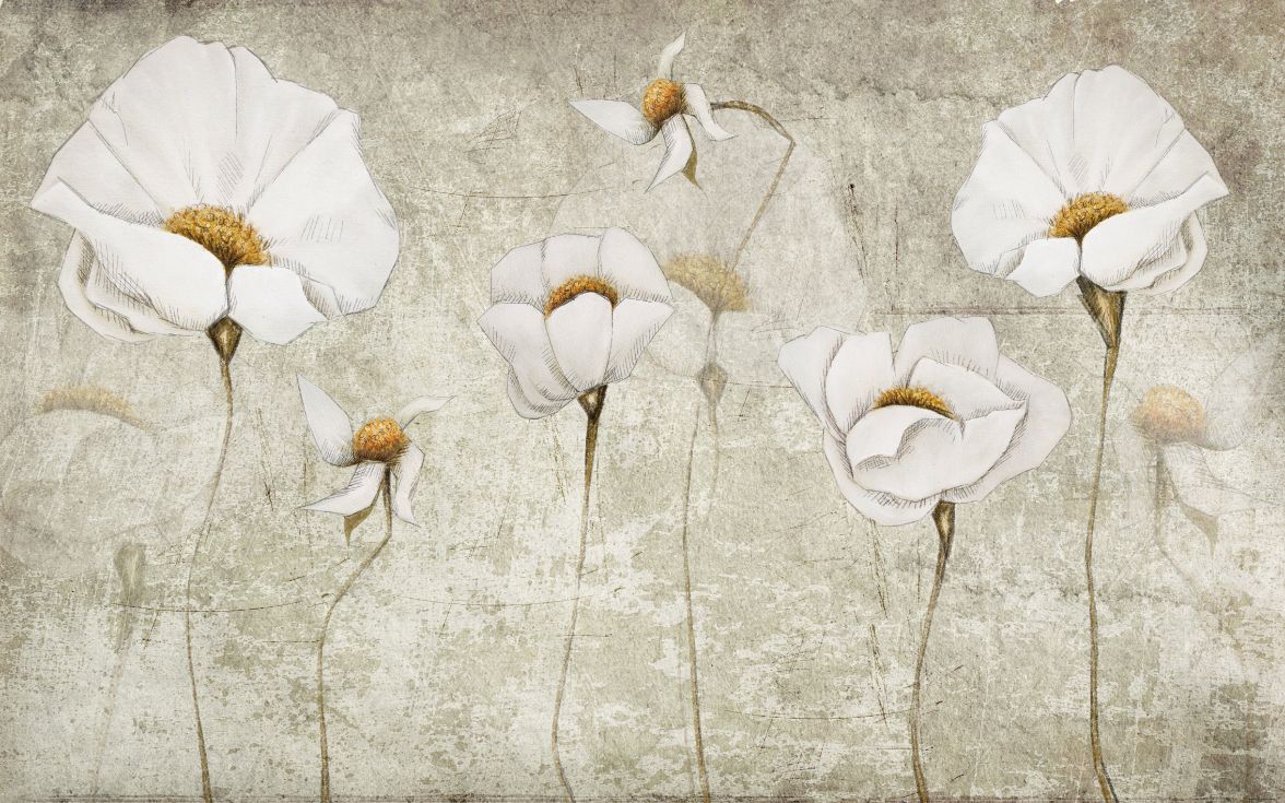 White Grunge Flower Wallpaper Murals - Giffywalls