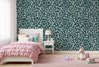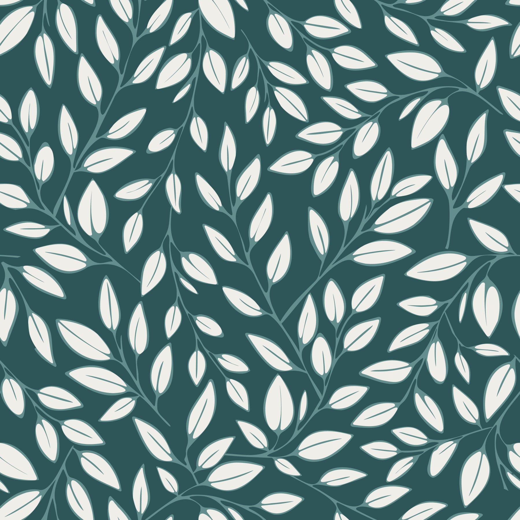Adorn your walls with the understated elegance of 'White Vines on Teal'. This exquisite design captures the tranquil beauty of nature with a sophisticated twist. Gentle, off-white vines delicately intertwine across a soothing teal backdrop, creating a calming and refreshing atmosphere in any room. The subtle contrast between the light, airy foliage and the deep, serene teal evokes a sense of peace and serenity. This pattern offers a contemporary take on classic botanical motifs, making it a versatile choice for various interior styles. Whether you're aiming for a minimalist aesthetic or a touch of refined charm, 'White Vines on Teal' will transform your space into a sanctuary of style. Let the delicate dance of vines and leaves bring a touch of the outdoors in, creating a haven of tranquility within your home.
