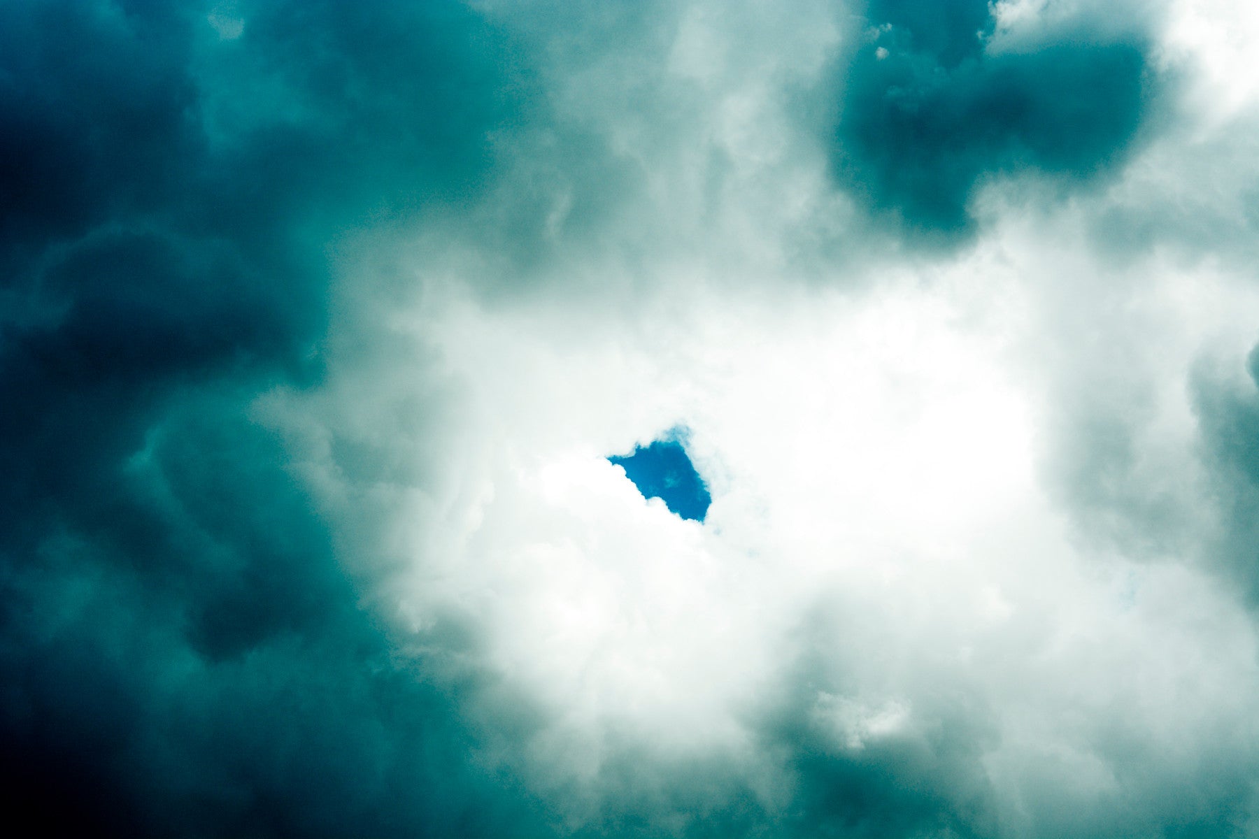 Dive into the ethereal depths of Whole a wallpaper that encapsulates the beauty of completeness. Turbulent, teal-tinged clouds swirl with an energy that is both calming and invigorating, hinting at a storm passed and a new dawn breaking. Amidst the swirling grey-white mass, a small, vibrant patch of cerulean sky peeks through, representing a core of clarity and wholeness. This artwork is a visual representation of finding peace within chaos, reminding you that even within the stormiest periods, a sense of completeness remains accessible. 'Whole' invites you to breathe deeply, embrace the present moment, and connect with the inherent sense of wholeness residing within you, providing a calming backdrop to your digital life and serving as a constant reminder of inner peace.