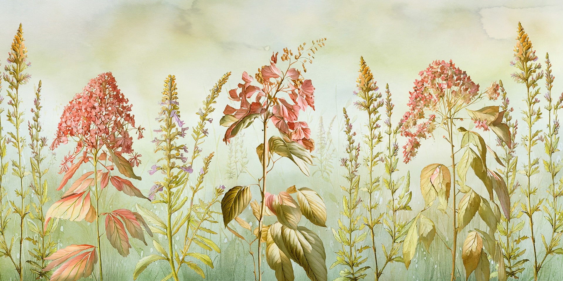 Nature-inspired wild flowers meadows mural wallpaper for a cozy vibe.