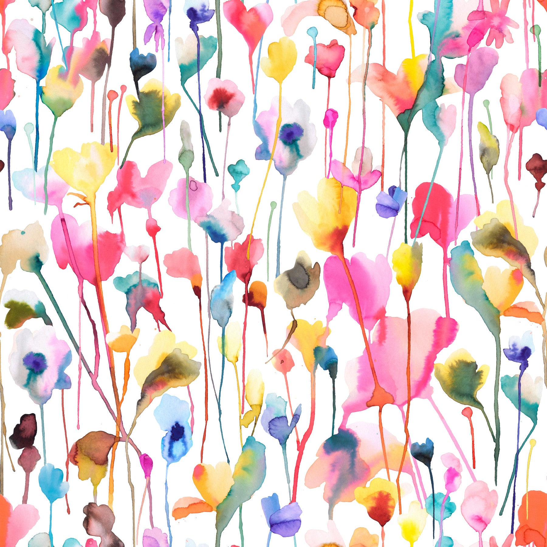 Embrace the vibrant energy of spring with this "Wild Flowers Watercolor Pink" wallpaper. A captivating array of blossoms in watercolor paints bursts across a crisp white background. The flowers, rendered in a loose, expressive style, showcase a delightful spectrum of pinks, yellows, blues, and greens, creating a joyful and romantic ambiance. Each petal seems to drip with color, suggesting a freshness and spontaneity that's both artistic and uplifting. Perfect for adding a touch of whimsical nature to any digital device.