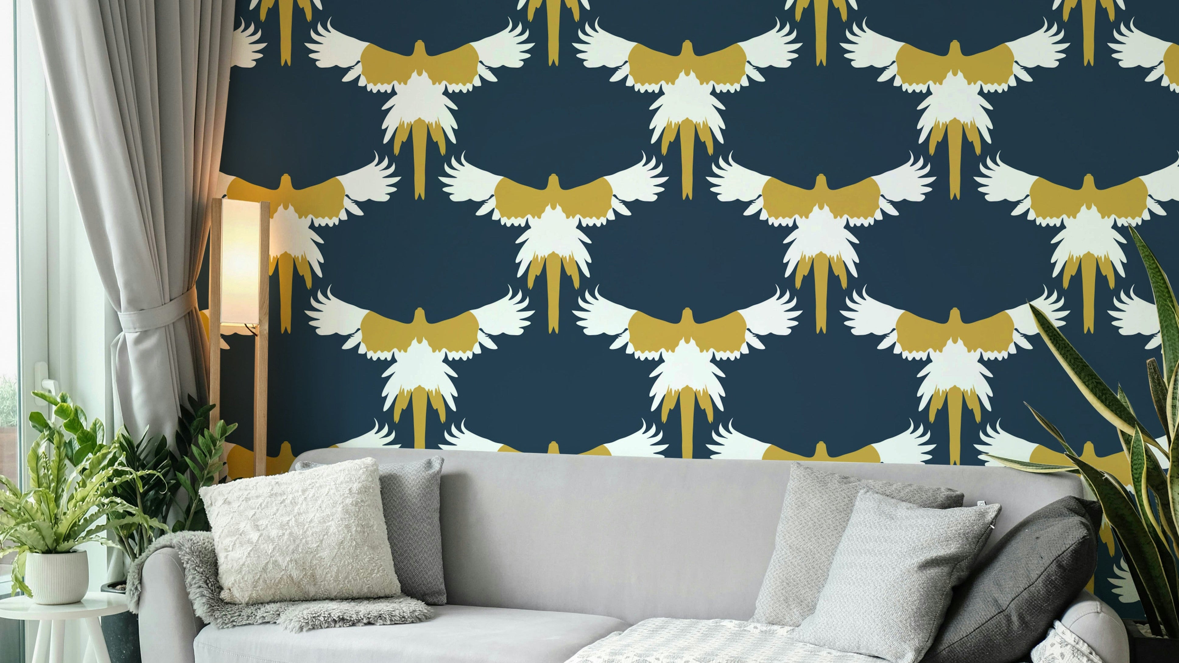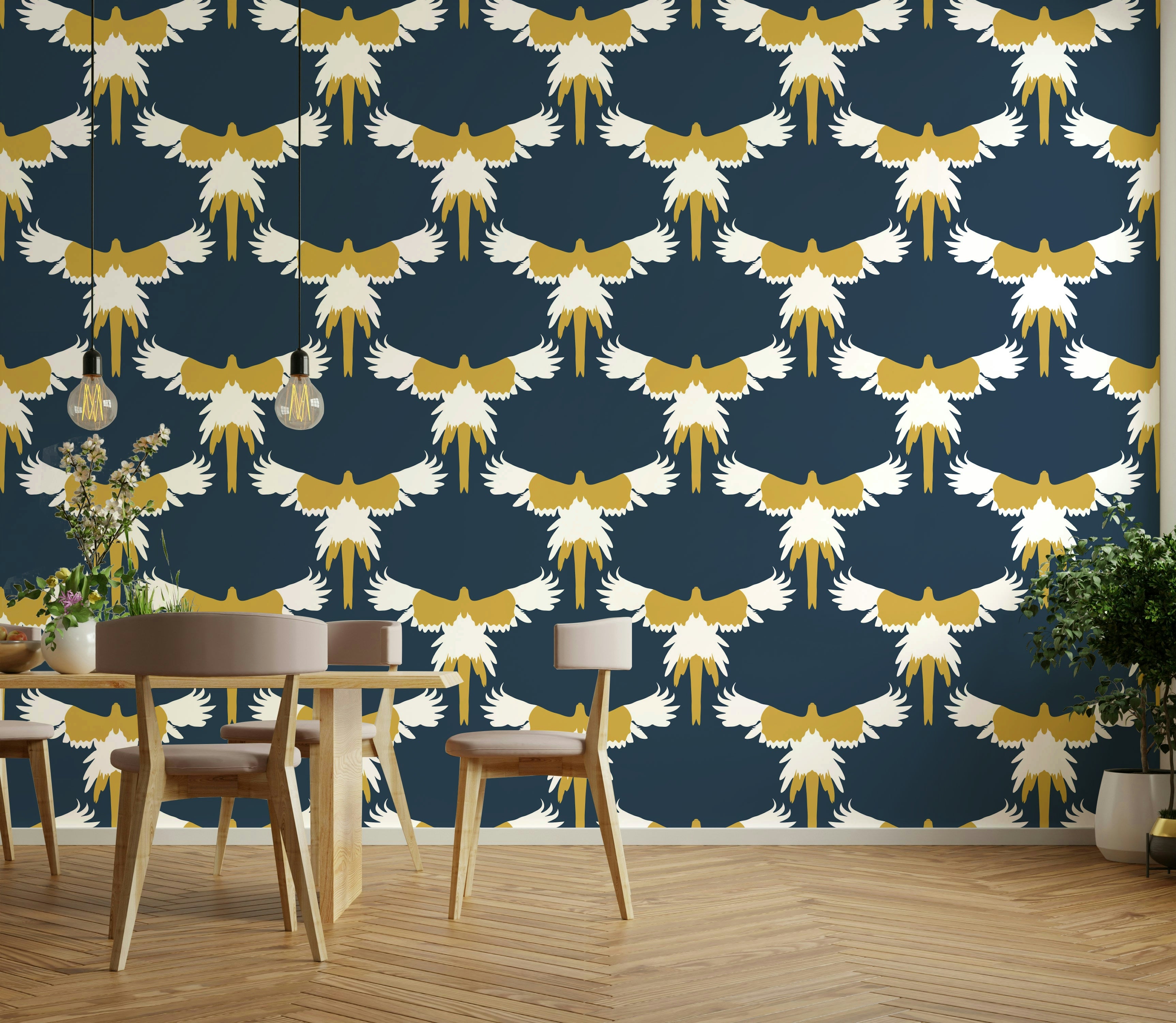 Wild Macaws Flying Wallpaper features vibrant white and golden macaws soaring gracefully against a rich navy blue background. This mural wallpaper offers a bold and dynamic look, perfect wallpaper for walls in living rooms, nurseries, or tropical-themed spaces that celebrate nature’s beauty. The clean, flat color design adds a modern and artistic flair, while the large-scale bird motifs create a lively and uplifting atmosphere. Crafted from durable, easy-to-install materials, this wall mural maintains its vibrant colors and smooth finish over time. Ideal for interiors with a love for wildlife and bold design statements.