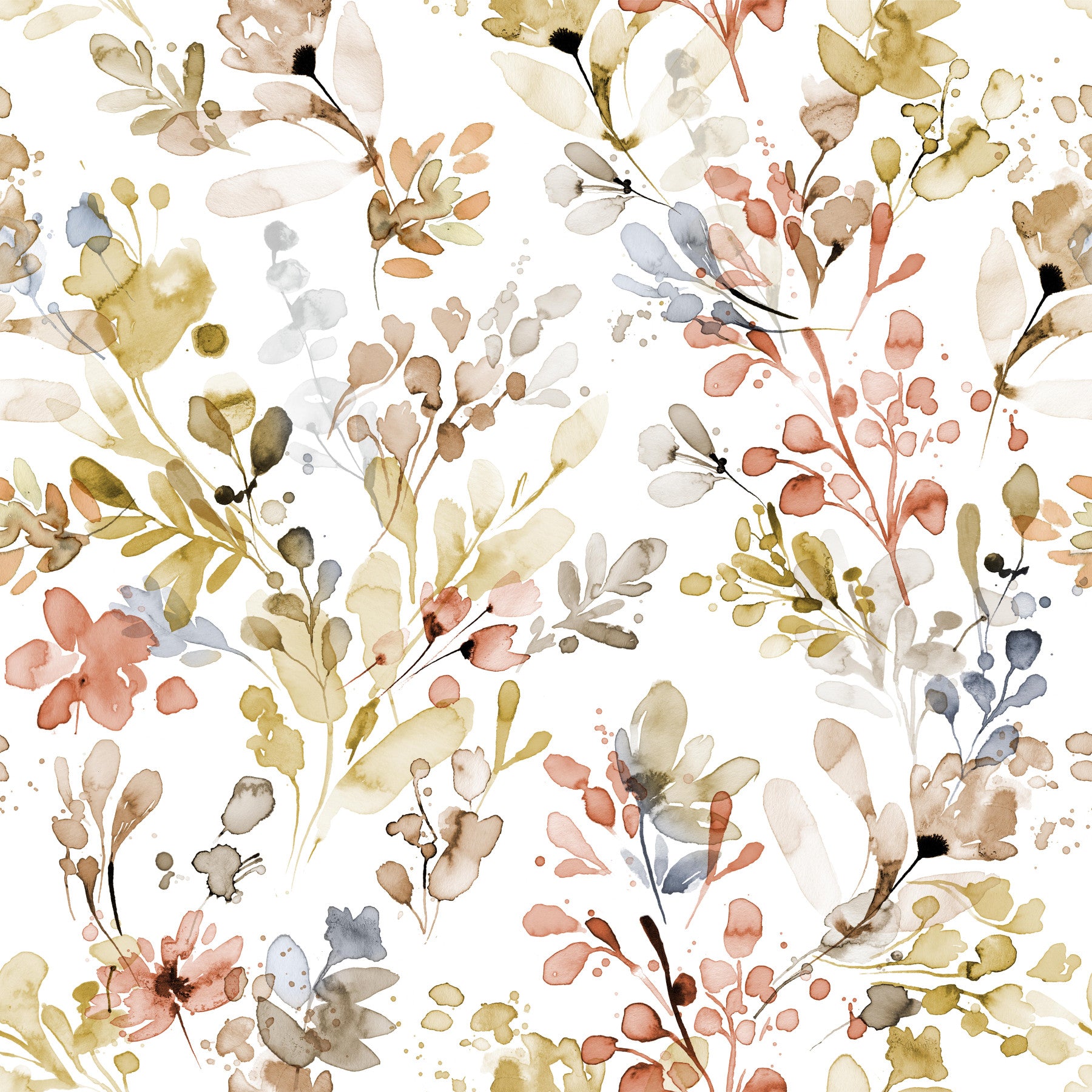 Embrace the serene beauty of 'Wild Nature Plants Gold,' a digital wallpaper featuring a watercolor dream of wildflowers. Delicate blooms in earthy golds, soft pinks, and muted blues dance across a pristine white background, creating an ethereal and calming ambiance. Loose, expressive brushstrokes capture the wild essence of nature, with subtle splashes of color adding a touch of unexpected vibrancy. This design is perfect for those seeking a sophisticated yet organic aesthetic, transforming your digital space into a haven of tranquility and understated elegance. The subtle gold tones lend a touch of luxury to this naturally inspired masterpiece.
