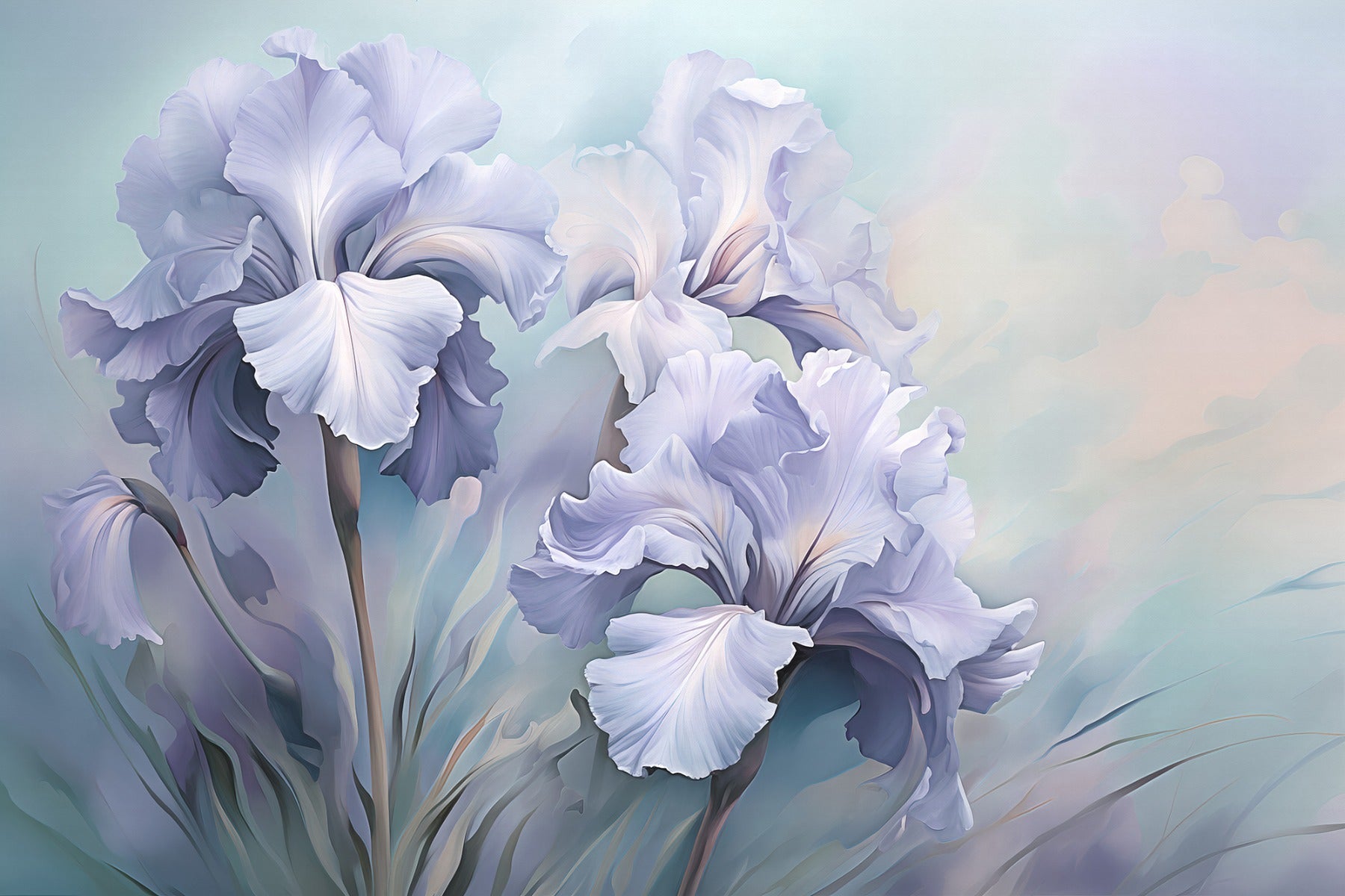 Elegant wild purple iris wallpaper murals for a tranquil, floral touch.