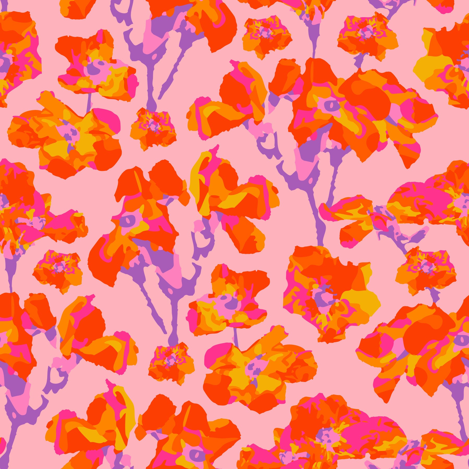 Immerse yourself in the vibrant energy of a summer rose garden with this abstract floral wallpaper. Wild Roses explodes with a joyful palette of coral red, orange, yellow and purple on a soft blush background, creating a bold and captivating design. The abstract interpretation of roses adds a modern twist to a classic floral motif, lending a sense of whimsy and artistic flair to any space. This wallpaper evokes the feeling of strolling through a blooming garden, bathed in sunshine, with the air filled with the sweet fragrance of roses. The bright, contrasting colors create a dynamic and cheerful atmosphere, perfect for adding a pop of color and personality to your space. Let this "Wild Roses" wallpaper transform your space into a blooming oasis of abstract beauty and summer vibes. This pattern design is also available in Other Colourways too! Original wallpaper pattern design by Jackie Tahara of UnBlink Studio.
