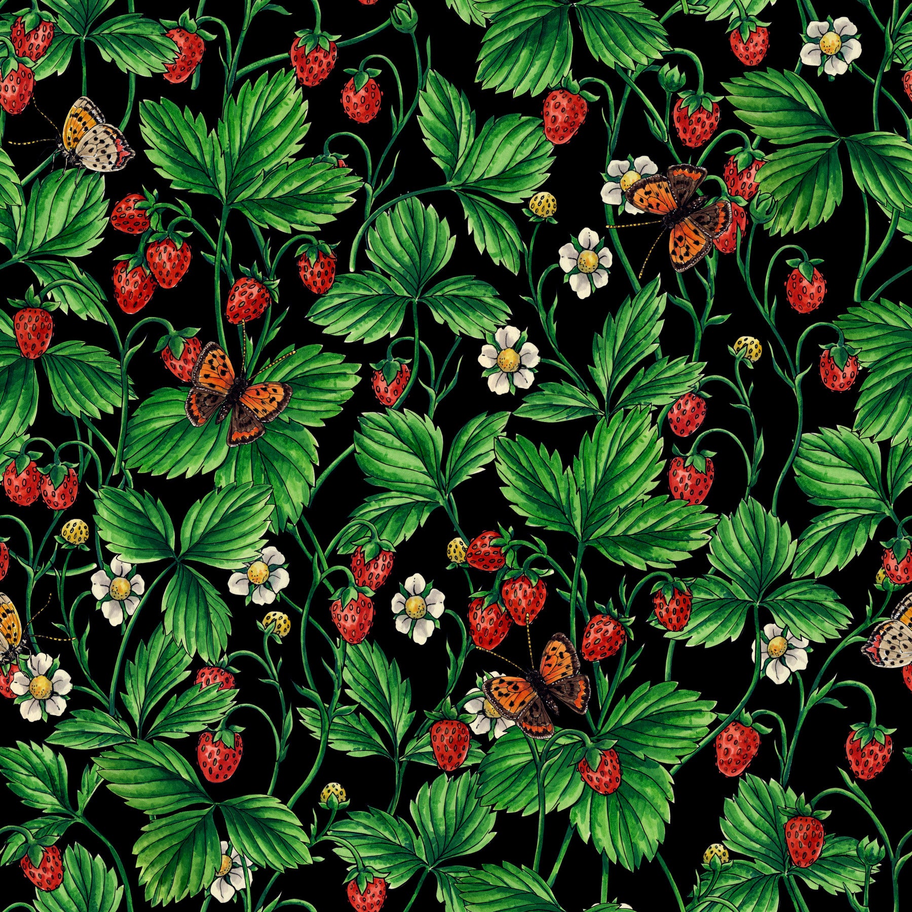 A peaceful flower and butterfly design mural on decorative wallpaper.