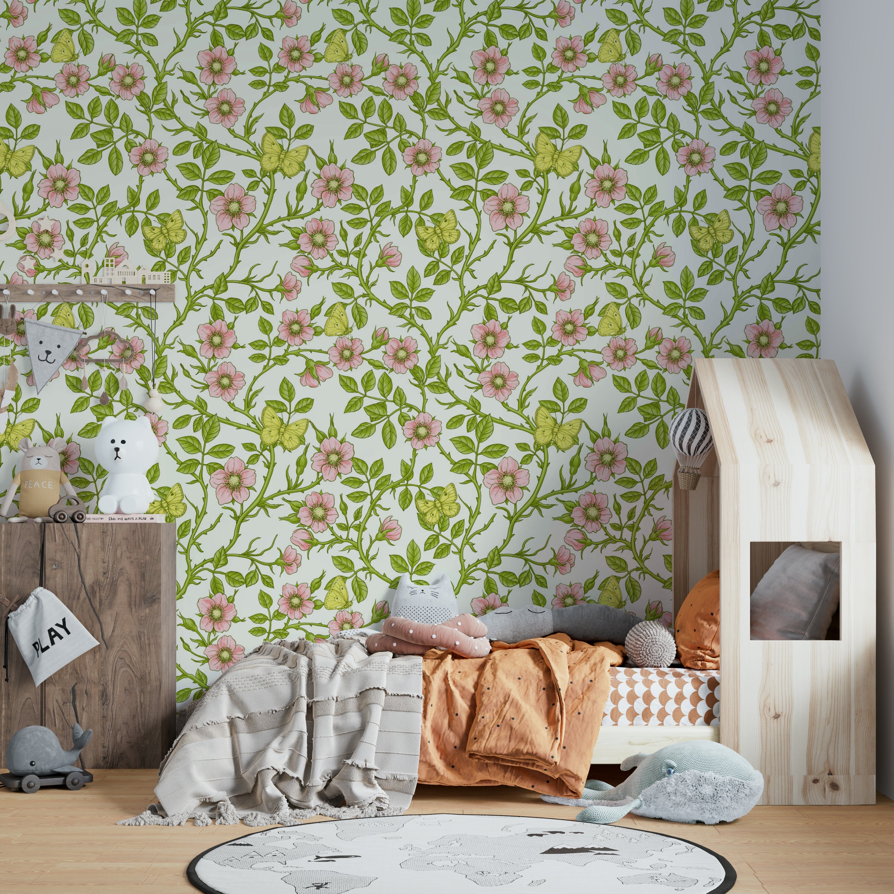 Wild roses and butterflies wall mural