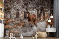 Wild Horse, New Forest. Bring the untamed spirit of the wilderness into your living space with "Wild Stallion." This captivating wall décor piece captures the essence of freedom and raw beauty, showcasing a magnificent horse amidst a serene forest setting. The image features a striking stallion, its coat a rich chestnut hue, standing proudly amidst a carpet of muted ferns and silver-tinged foliage. Filtered light dances through the trees, creating an ethereal atmosphere that evokes a sense of tranquillity and adventure. "Wild Stallion" is more than just decoration; it's an invitation to connect with nature and embrace the untamed spirit within. Let this piece transform your wall into a window to a world of natural wonder, where the beauty and power of the wild reign supreme. Its understated elegance complements a variety of interior styles, adding a touch of rustic charm and sophisticated grace.