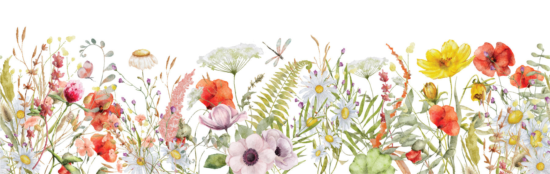 Invite the charm of an airy wildflower meadow indoors with this artistic wallpaper for walls. A variety of anemones, poppies, daisies, and ferns create a serene atmosphere. Lush yellows, joyful reds, and vibrant greens blend gently on a pristine white background. It perfectly complements any bedroom, hallway, or living area with light-filled interiors. The watercolor design introduces a fresh, organic, and inviting touch.