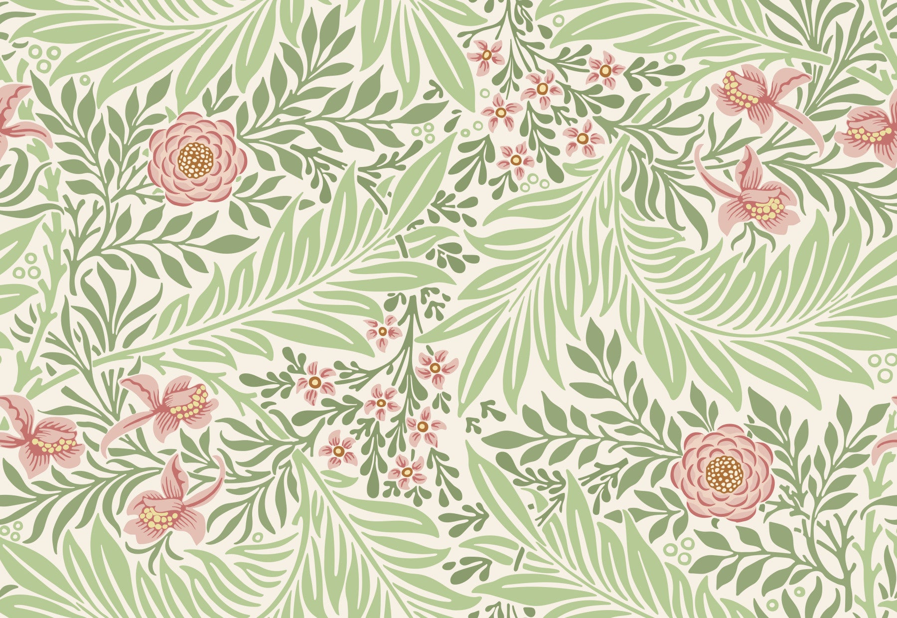 William Morris’s Larkspur is a quintessential Arts and Crafts pattern: rhythmic sprigs of larkspur and curling foliage arranged in a refined, small repeat. Created for Morris & Co in the Victorian era, it blends botanical accuracy with hand-crafted warmth, ideal for wallpaper, fabric, upholstery and curtains. Think heritage English country house, Pre-Raphaelite romance, timeless cottagecore. Keywords: William Morris, Larkspur, Arts and Crafts, Victorian, botanical, floral, wallpaper, textile, home decor, classic, block print, indigo, sage, blue, cream, surface pattern, ornamental repeat ivy.